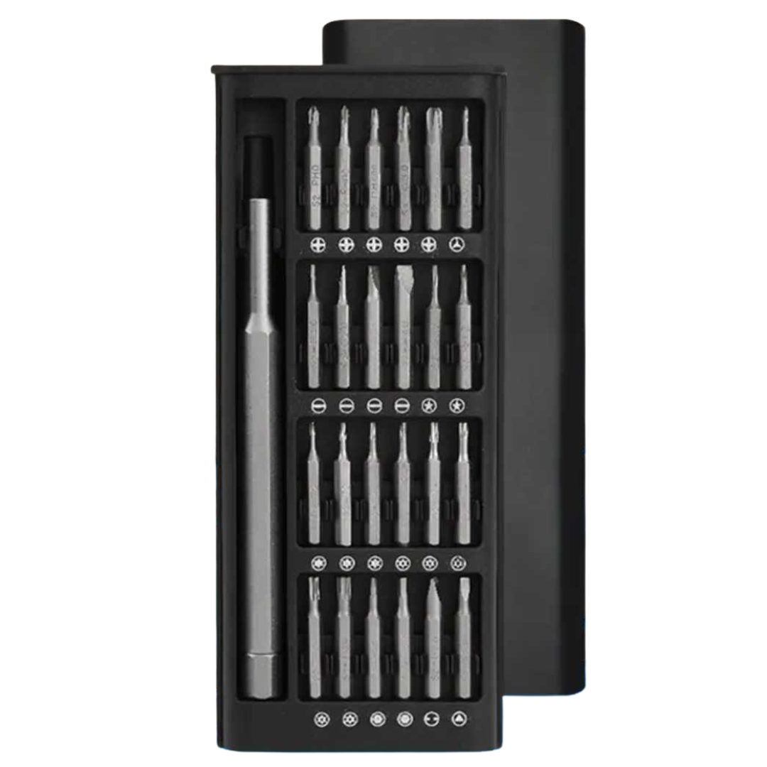 This screwdriver set is made from alloy steel and includes 24 different heads for multiple uses. Completed with a handy case, which slides open to access the tools.