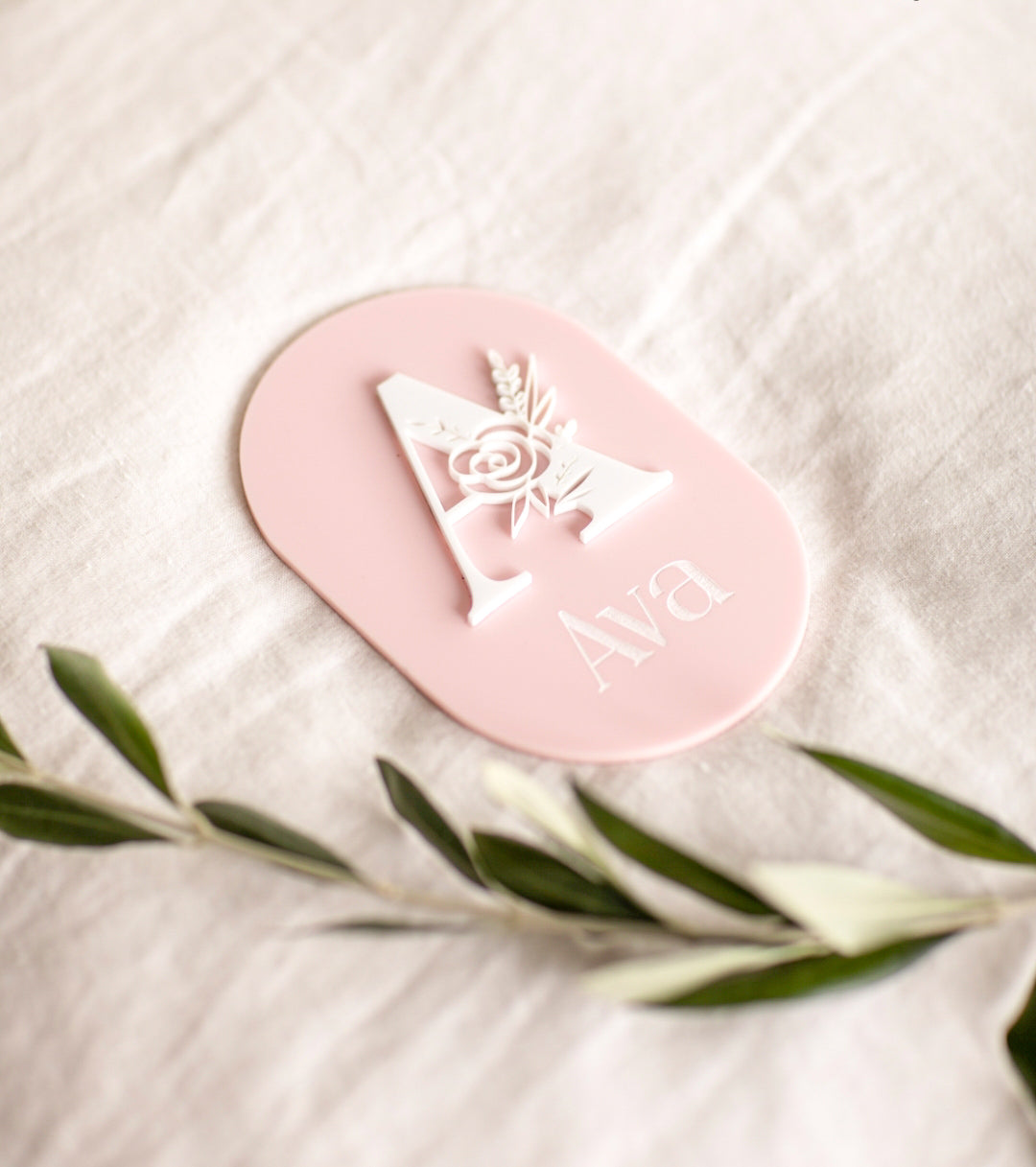 Acrylic Floral Letter Announcement Plaque - Acrylic Oval
