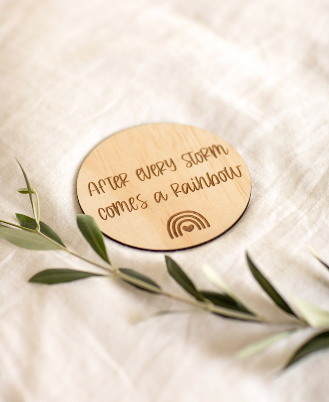For those who have received the blessing of their rainbow. Use this plaque for apart of your annoucement or just a decor piece in their room.