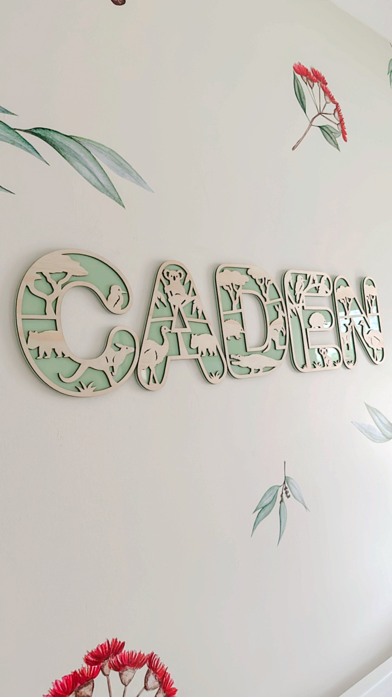 Available in keyring, or 2 sizes of wall letters. Our letters are created with 2 layers of material with your choice of timber or acrylic for the base layer & as well as the letter layer.