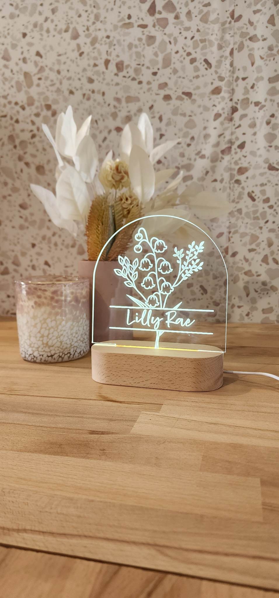 How beautiful are these LED Night Lights. Personalised with your little ones light with the flower the represents their birth month and name to create this sweet floral design.