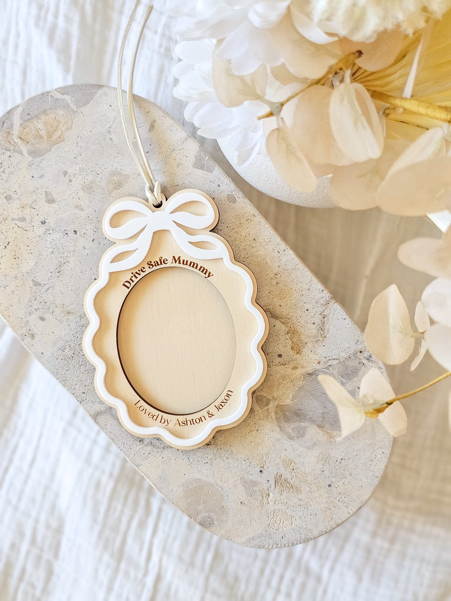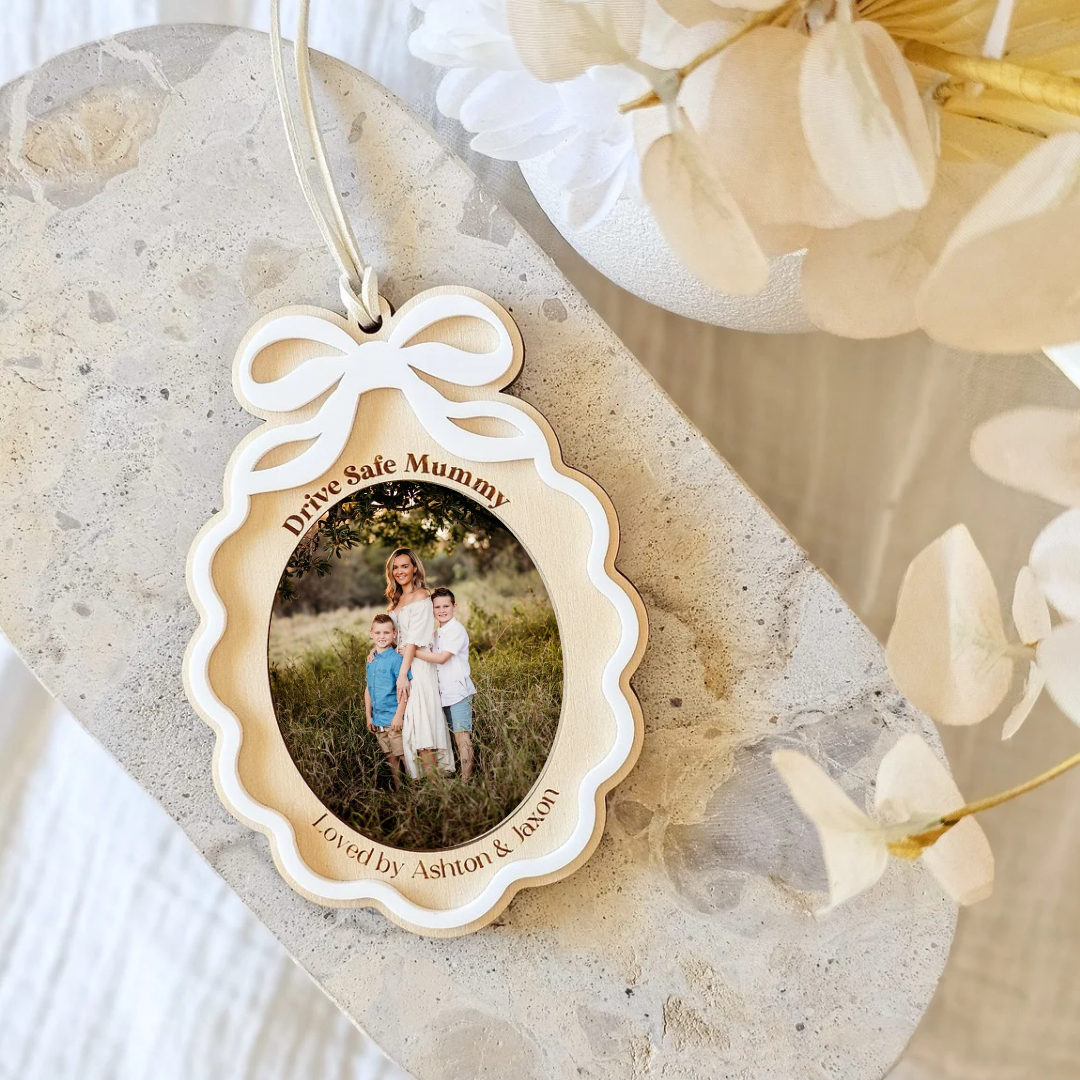 Personalised with your children’s names and a special message, this hanger features a spot for a treasured photo—perfect for adding a little love to your car.