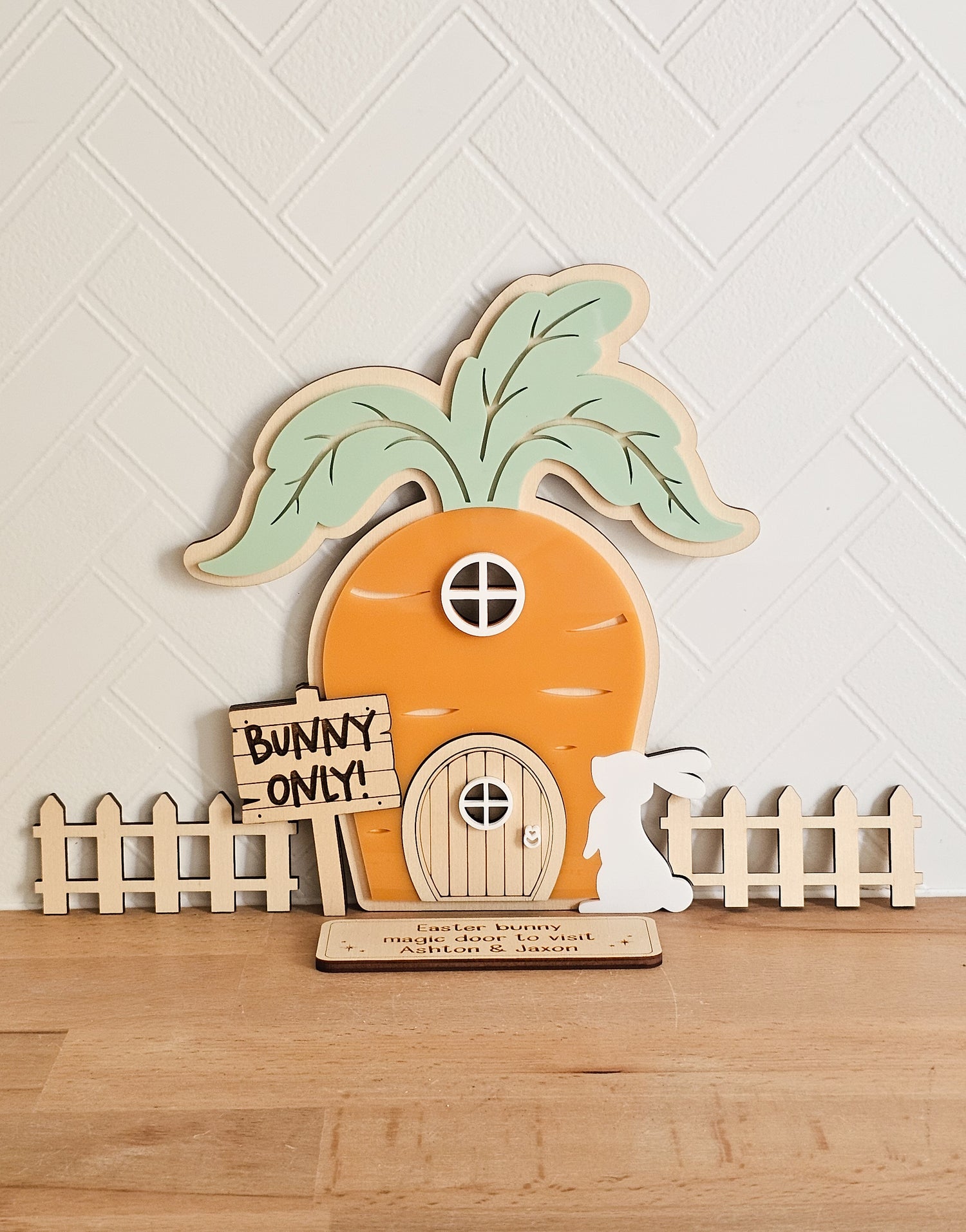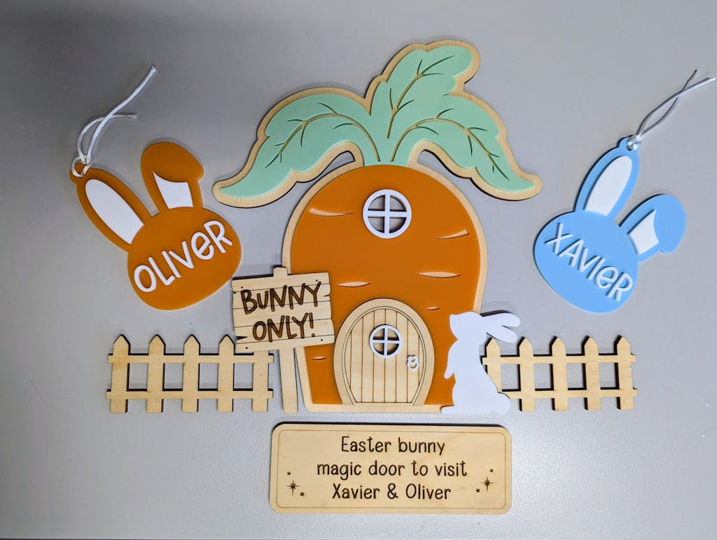 Welcome to the fantastical world of Easter Bunny Magic! The Easter Bunny Magic Door is a whimsical and enchanting portal for our beloved bunny friend to hop into your home. Let the magic of Easter fill your home with joy and wonder with this adorable door.
