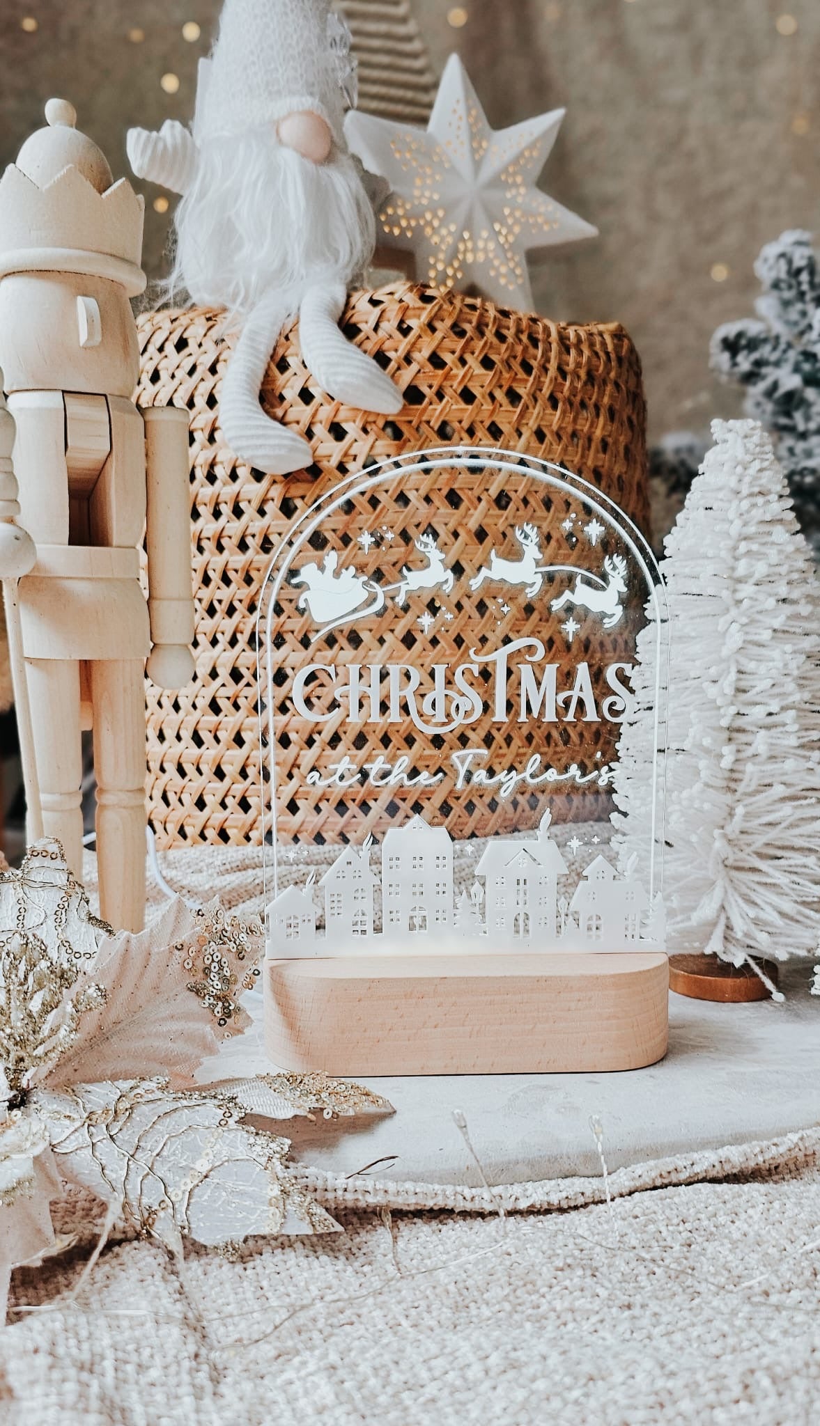 Add a touch of magic to your Christmas display with our Christmas Village Nightlight. Featuring a festive village acrylic design with engraved personalisation, this nightlight adds warmth and charm to your home. Brighten up your holiday season in a playful and unique way!