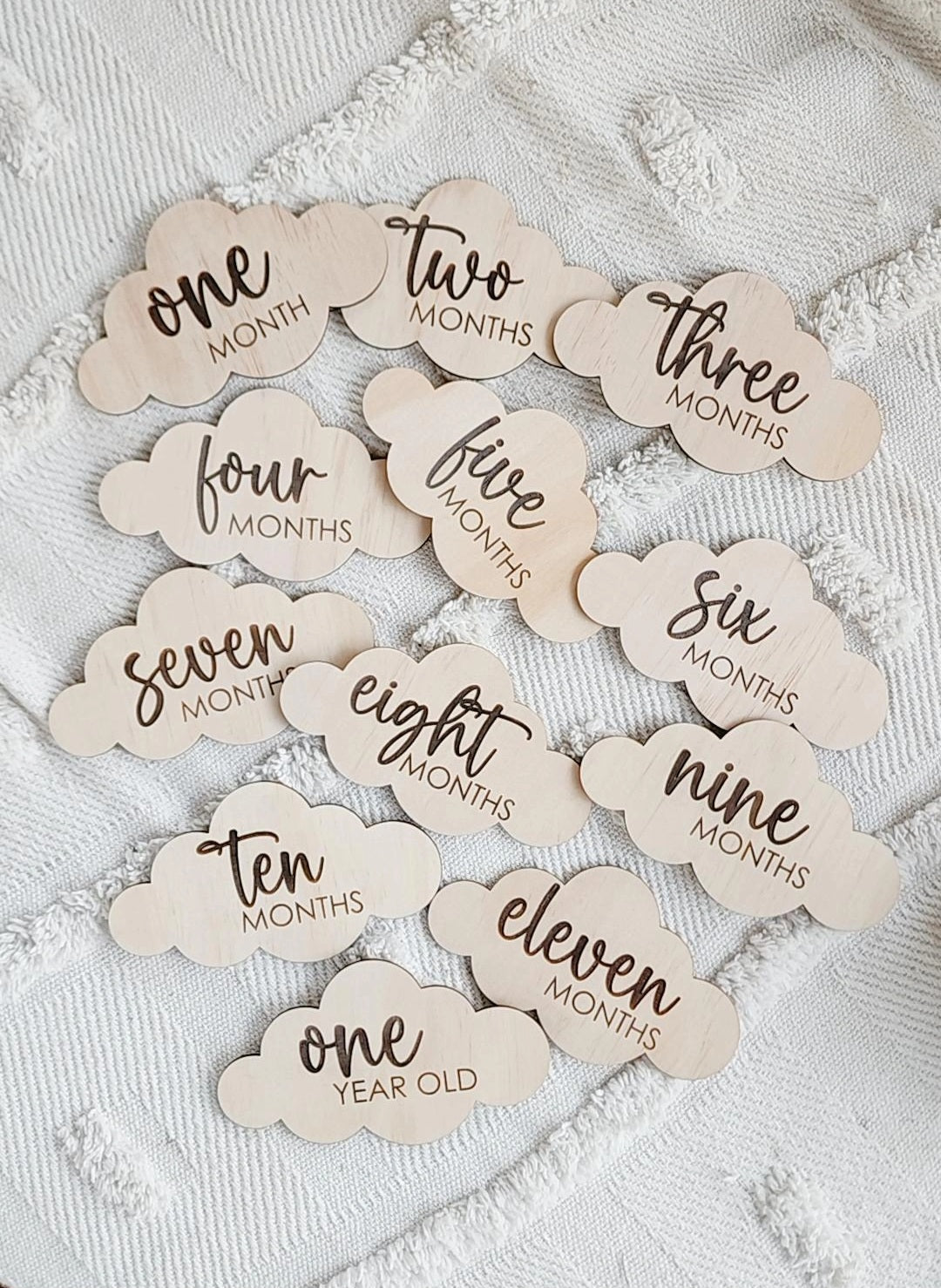 Watch your babe soar to new heights with our Cloud Monthly Milestone Set! Track their growing progress with the cloud-shaped plaque, and marvel at how much they've grown each month. Get ready to capture those magical moments as your little one takes flight! 🤩