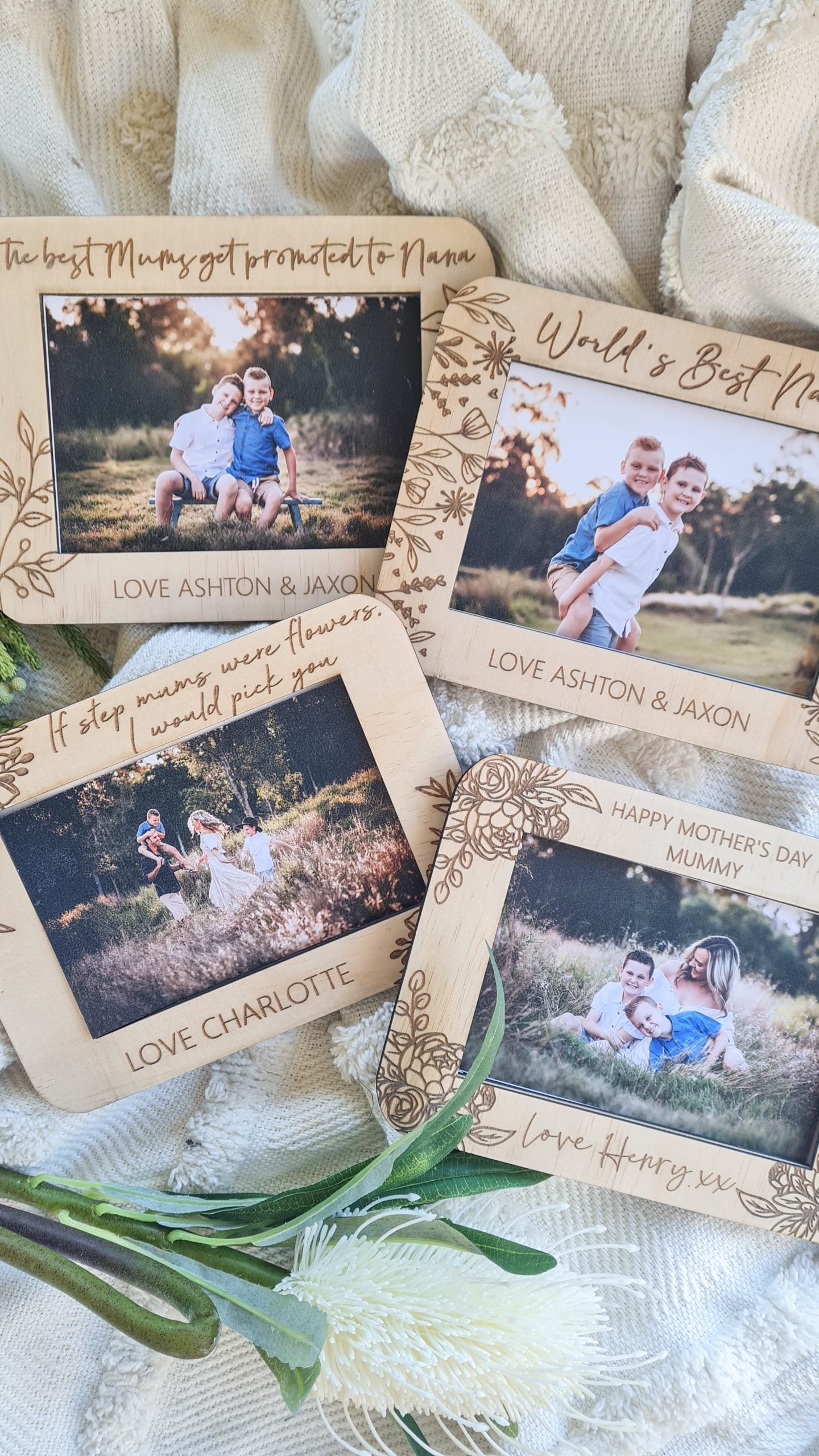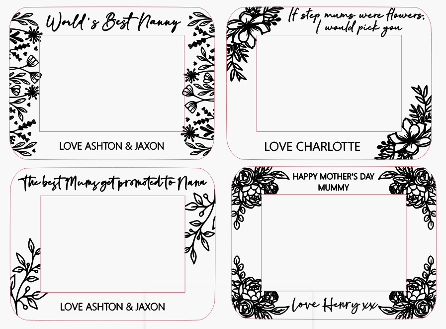 Our engraved wooden photo frames are 9mm thick, completed with engraved detailing and personalisation. Choose from 4 beautiful designs and enter the title and names you require. Please note, some frames are suitable for small amount of names.