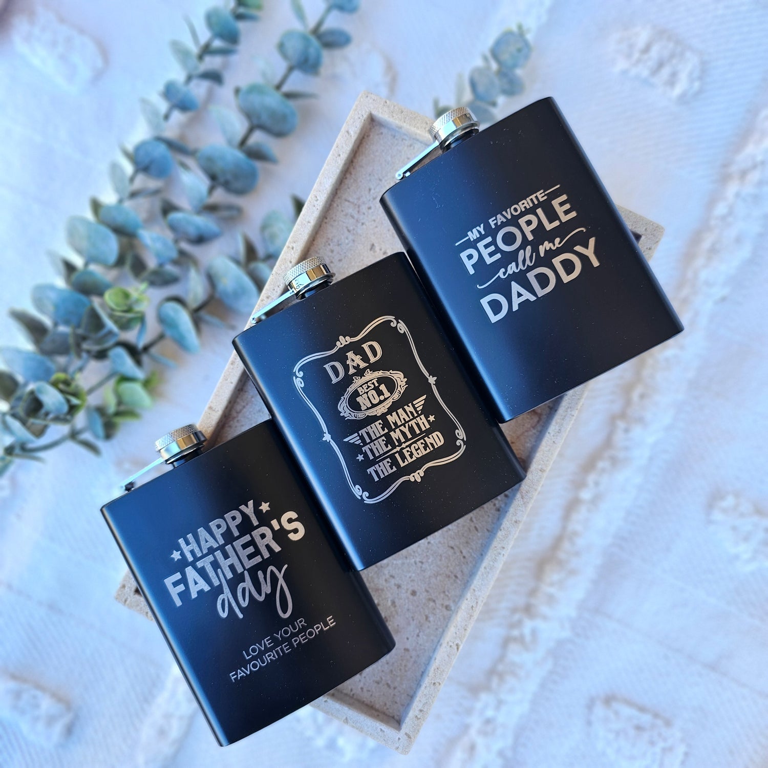 Celebrate Dad with our Father's Day Flask Box Set! Made of durable stainless steel, it includes 2 shot glasses and a funnel. Choose from 6 designs for a personalised touch. Perfect for any proud Dad, Grandpa, or Poppy. Cheers to Father's Day!