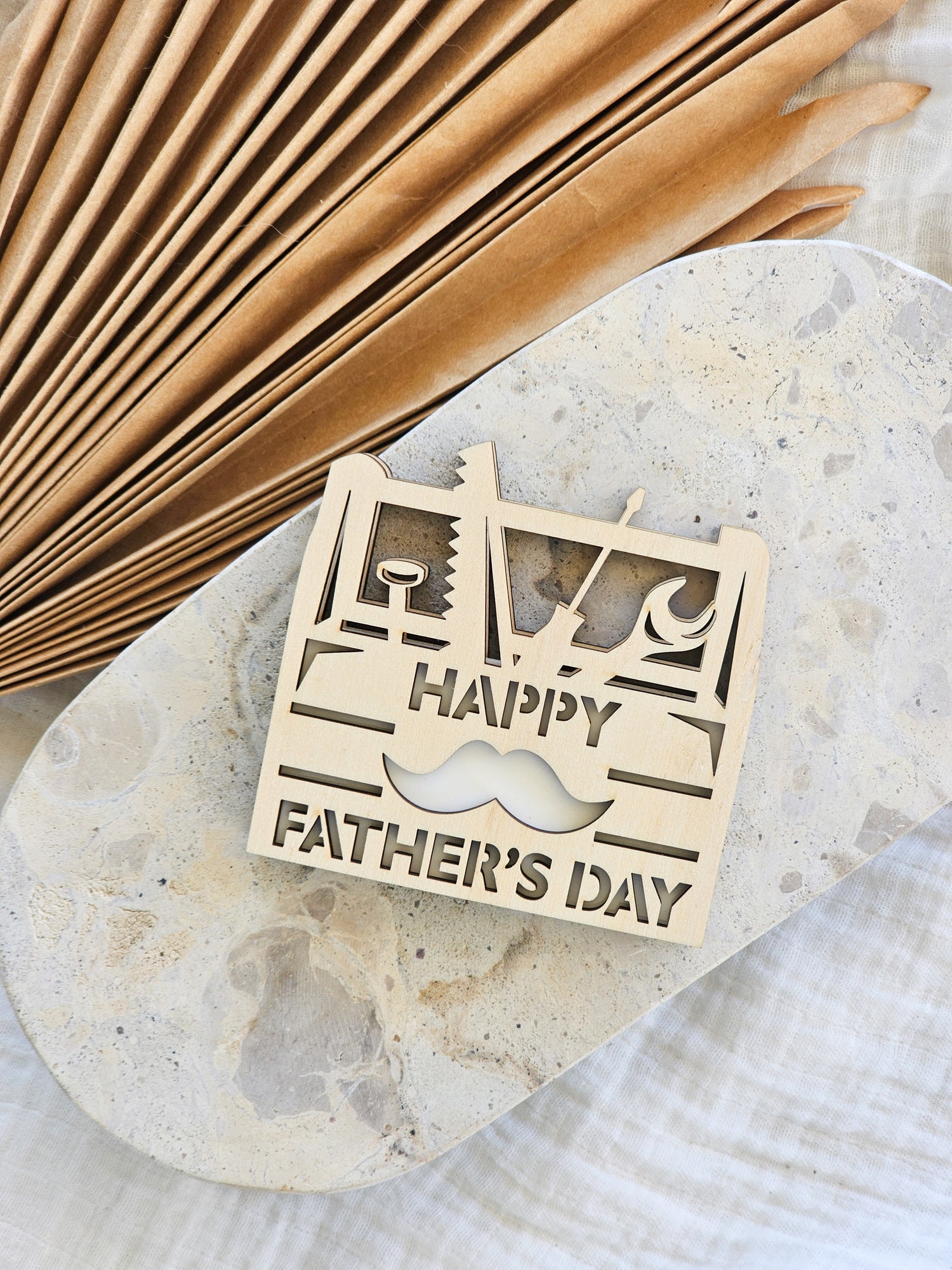 Forever socks and jocks - our gift card holders are the real Dad pleasers. They are the perfect mix of pun, fun & "I didn't just grab this on the way over". This playful gift card holder, shaped like a tool box, is crafted from layered timber and acrylic for a unique, sturdy feel. It features a clever cut-out space to slide in a gift card, making it the perfect way to present a Bunnings or construction-themed gift.