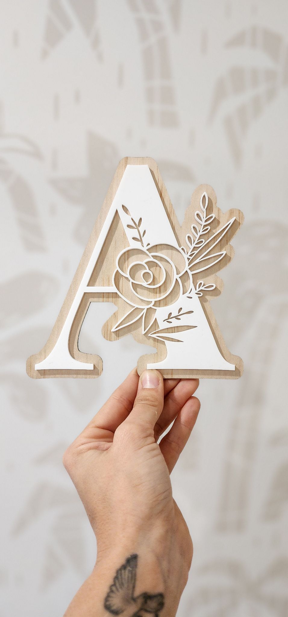 A pretty and personalised statement to add to your little ones room. Featuring a floral acrylic letter and timber base. Available in 2 sizes, medium measuring 15cm in height and large 25cm, please note the length will vary depending on the letter chosen.