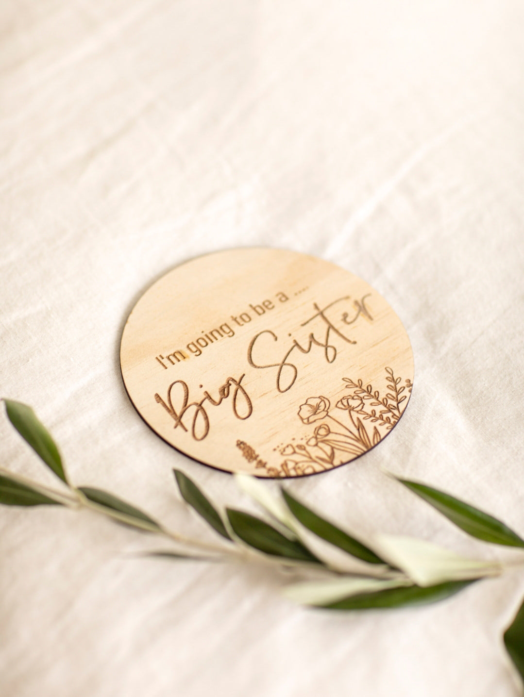 Big sister duties are here! Announce this special moment in your little ones life with this 15cm timber engraved plaque.