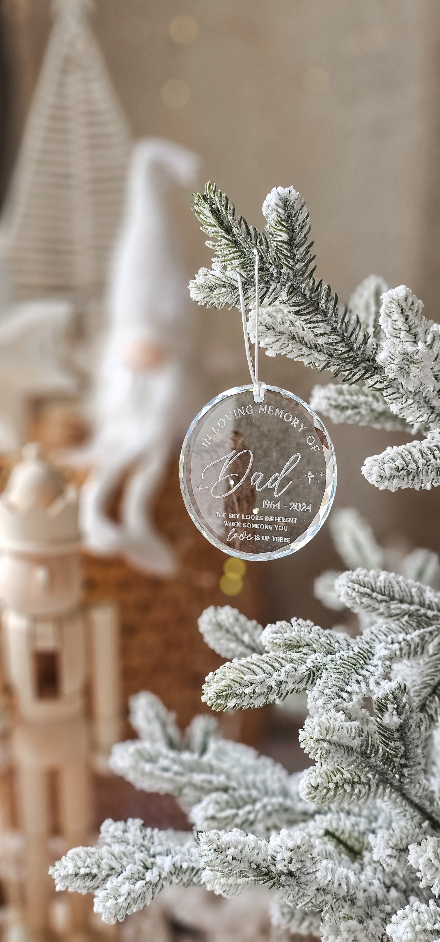 Honor lost loved ones this holiday season with our memorial Crystal Christmas Ornament. Engraved on solid crystal, this 8cm ornament comes with a white satin cord. Cherish their memory in a unique and beautiful way (while adding some sparkle to your tree)!