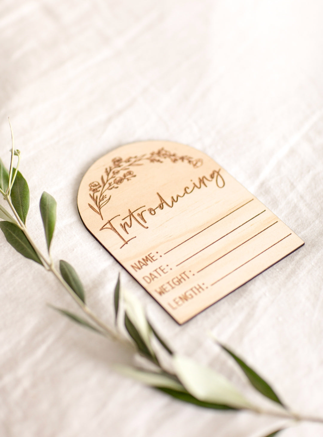 Introduce your little love with this engraved timber plaque measuring 15cm.