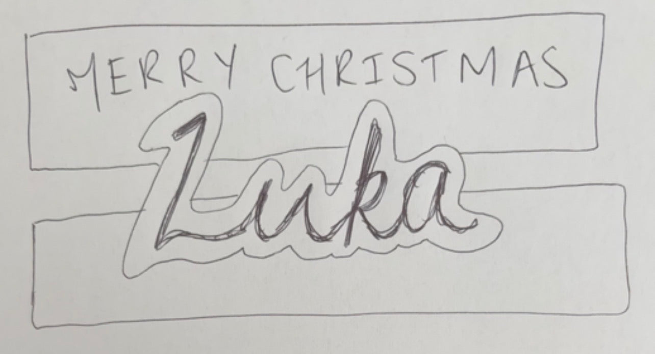 MERRY CHRISTMAS’ in the same font as the name in the photo below (capital letters, in white solids).