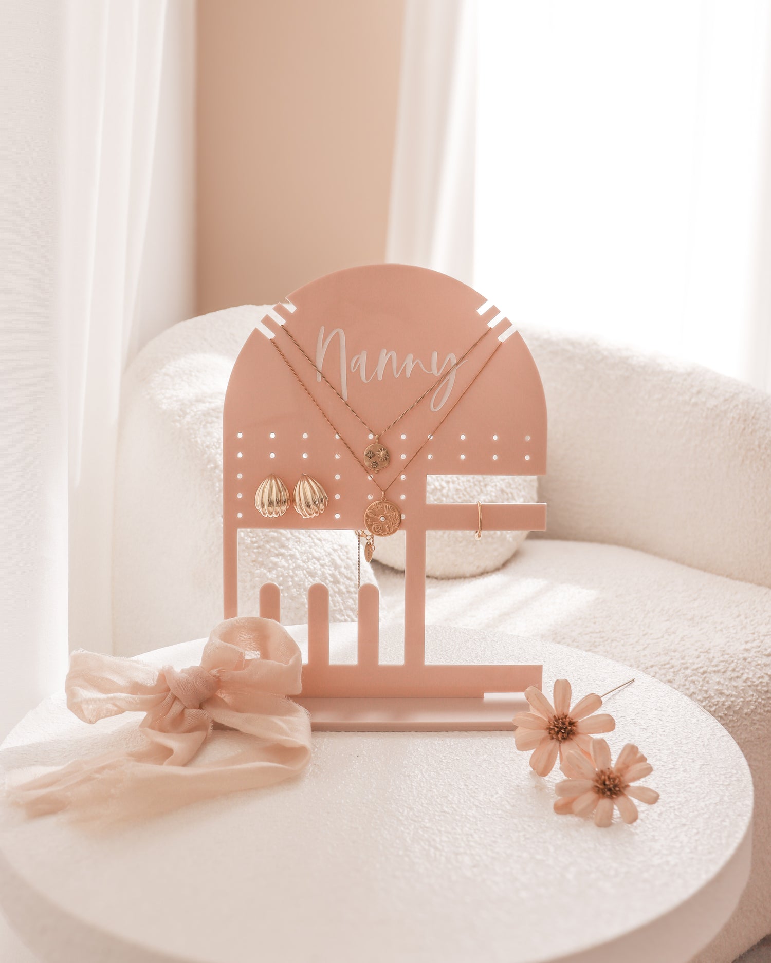 Finally, a stand that does it all! A place for your earrings, necklaces, rings, bracelet & watches to call home.