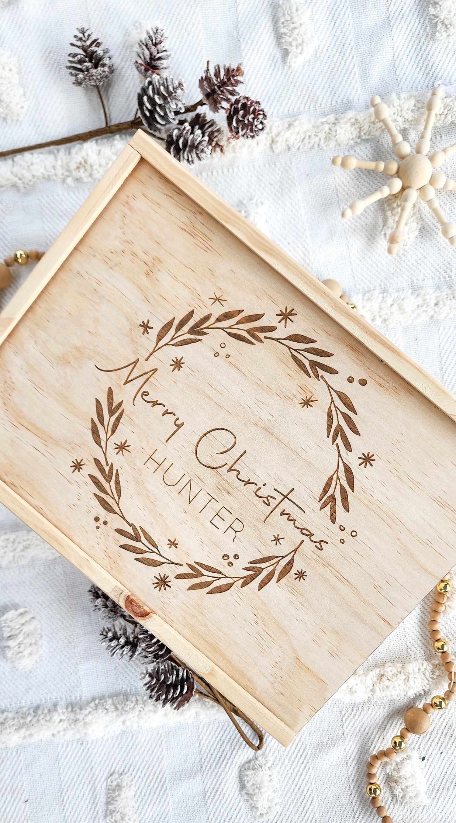 Built strong with 12mm pine sides with a 3mm ply base and a 4mm ply sliding lid which opens up to a large space for you to fill with cherished Christmas items