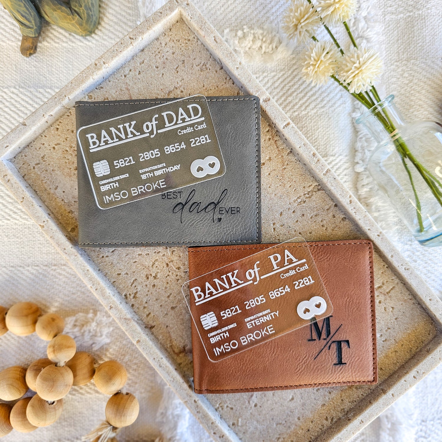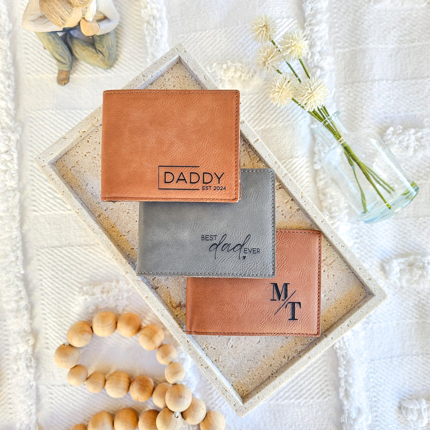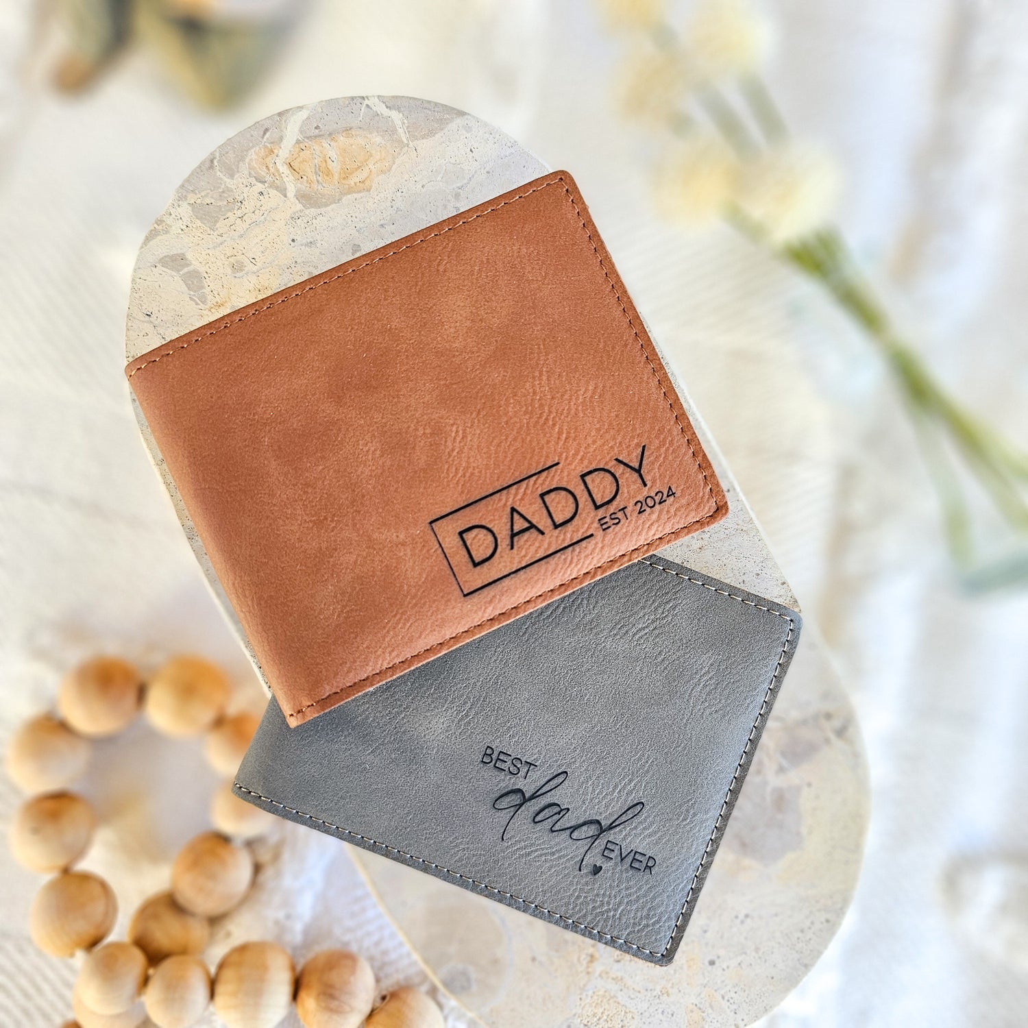 Surprise Dad with a practical yet stylish gift - our personalised engraved leather wallet. Made with high quality PU leather, choose from 3 unique designs and 2 sleek colours. A unique gift he'll treasure every day. (Dad will be one stylish man!)