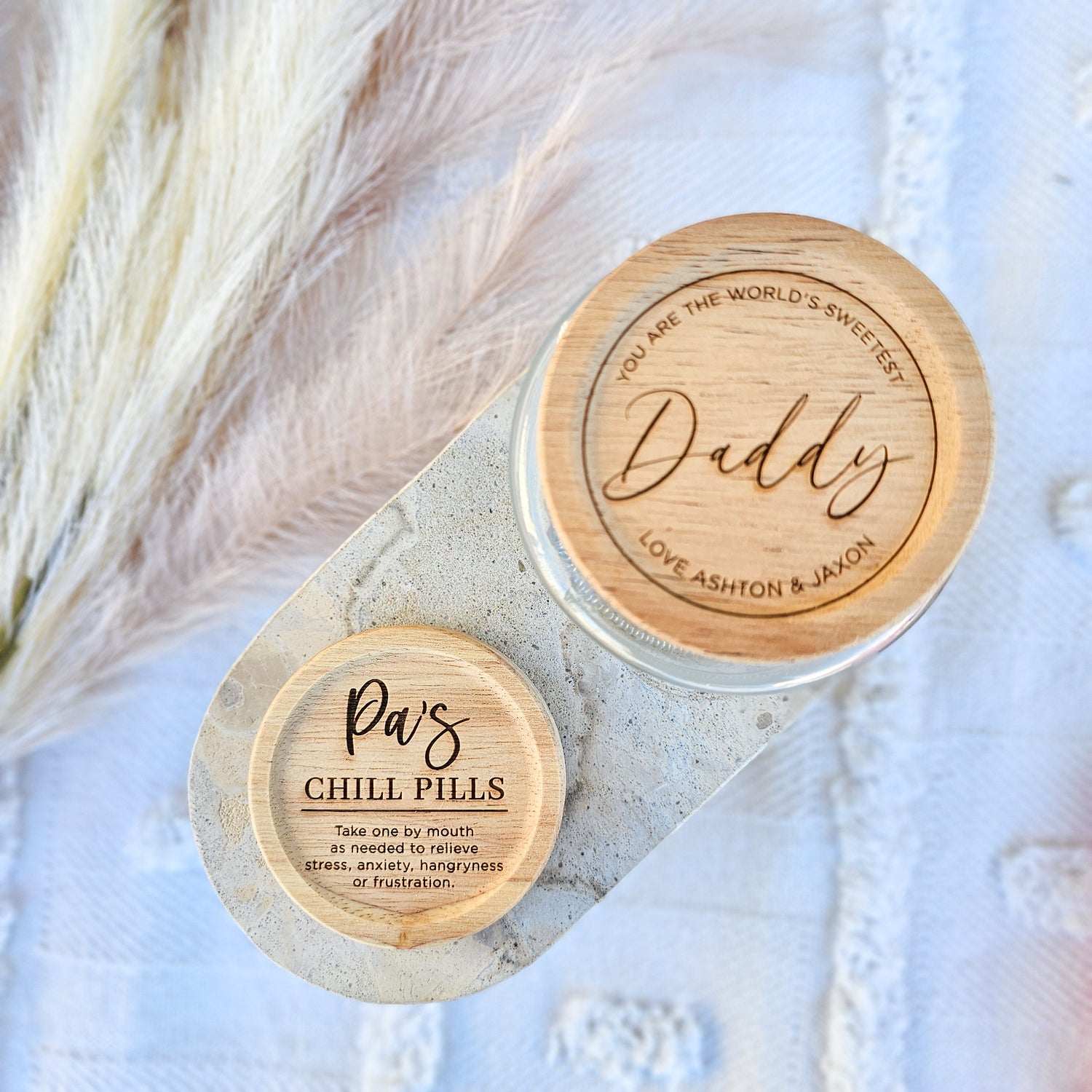 Sweeten up Father's Day with these fun and quirky Lolly/Treat Jars! Perfect for storing dad's favorite lollies and treats, these jars add a playful touch to any kitchen. Show your dad how much he means to you with this unique and thoughtful gift.