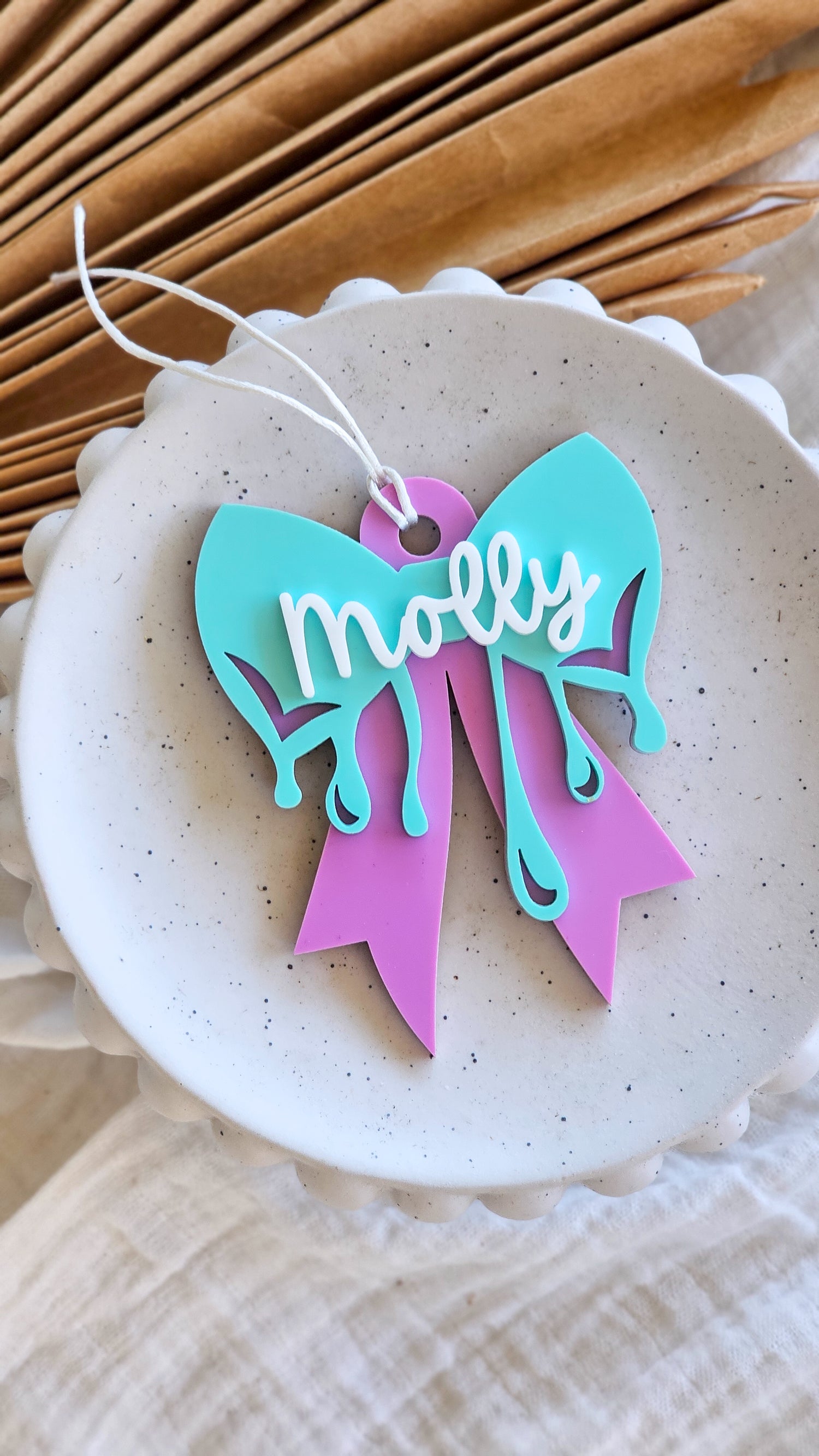Give your Halloween basket a spooky upgrade with this playful melting bow acrylic tag. Its dripping, eerie design adds a fun, creepy-cute touch that’s perfect for festive treats or party favors, making your celebration stand out with a unique and charming vibe.