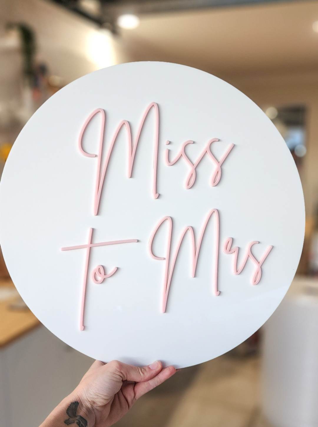 Our Miss to Mrs sign is perfect for hen's night, bridal shower's and available in a range of sizing and colours