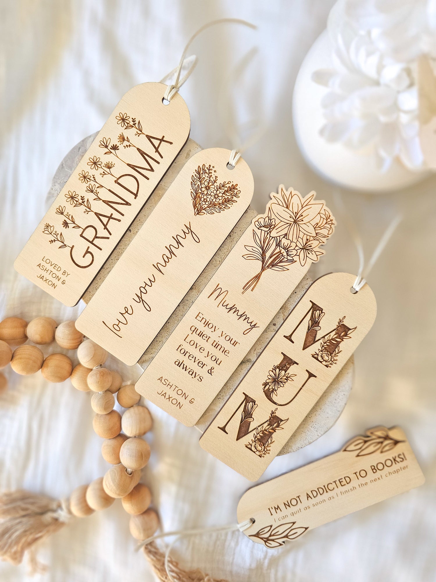 A little something special for the mums, grandmas, and nanas who love to get lost in a good book! Our Wooden Bookmarks are a thoughtful blend of charm and practicality, perfect for marking pages with love.