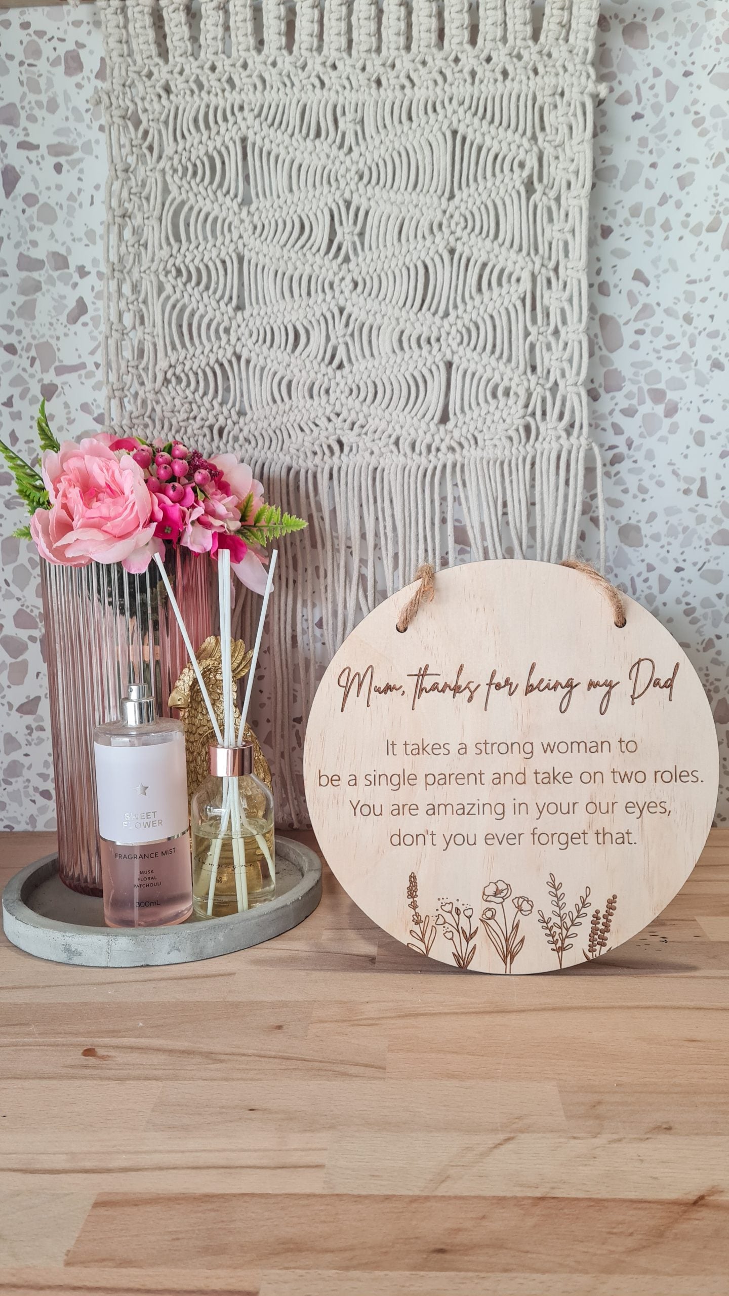 Mum, thanks for being my dad plaque