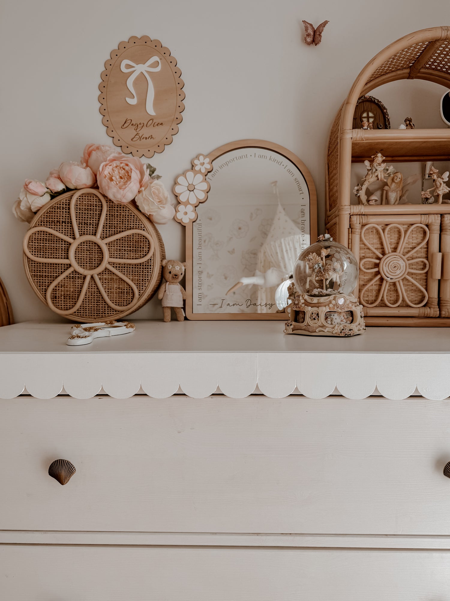 This unique mirror features a series of uplifting "I am" affirmations—engraved directly into premium mirror acrylic—to remind your little one just how amazing they are. From "I am brave" to "I am kind", each phrase is carefully chosen to build confidence, encourage self-worth, and foster a positive mindset from an early age, all within an eye capturing and stunning decor piece.