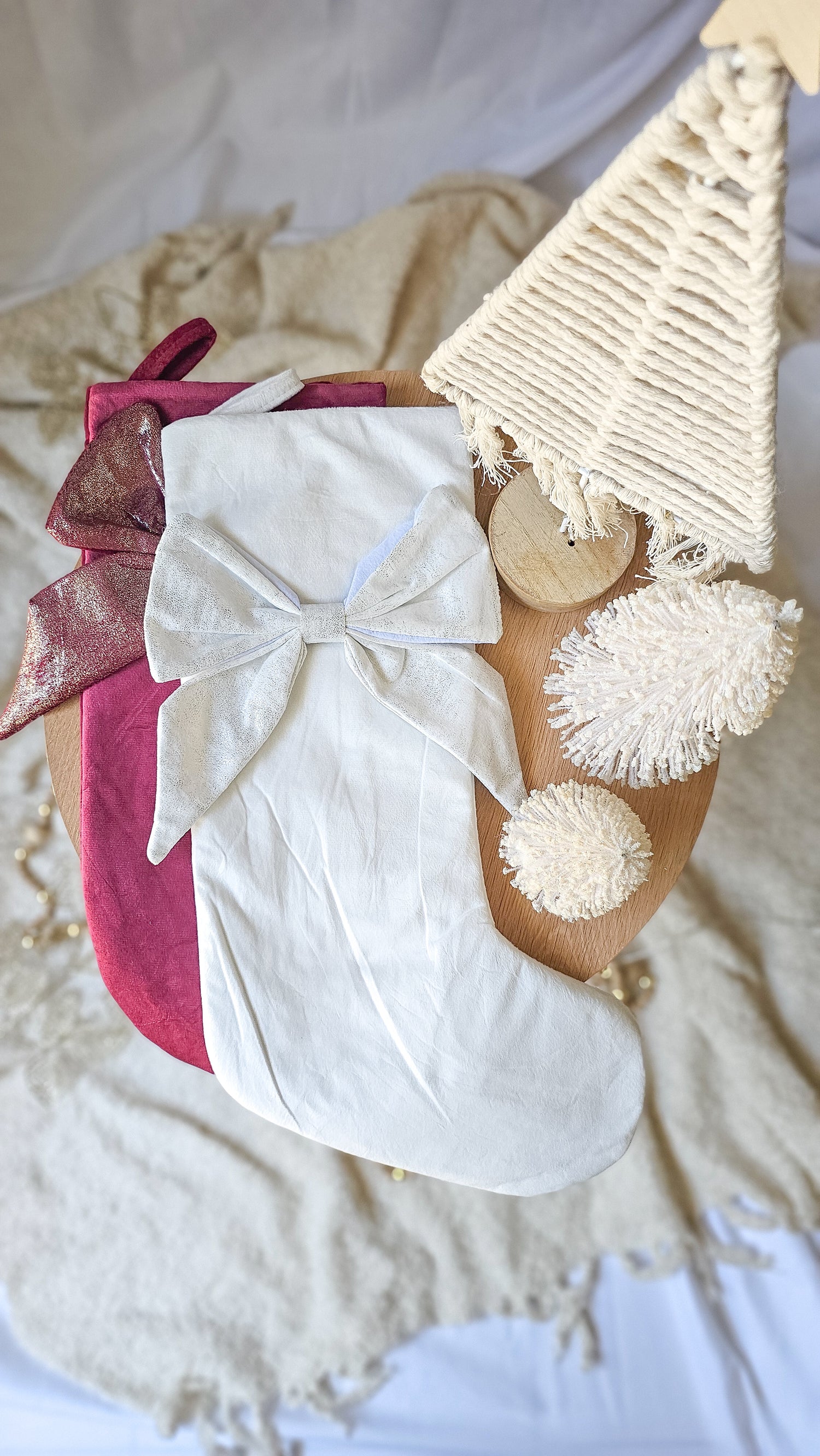 Add a touch of festive fun to your holiday decor with this Personalised Deluxe Bow Stocking! Featuring a large, elegant bow available in joyful green, classic white, or vibrant red, it measures a generous 45x26cm. Finished with a vinyl name, it’s perfect for making Christmas mornings extra special and personal!