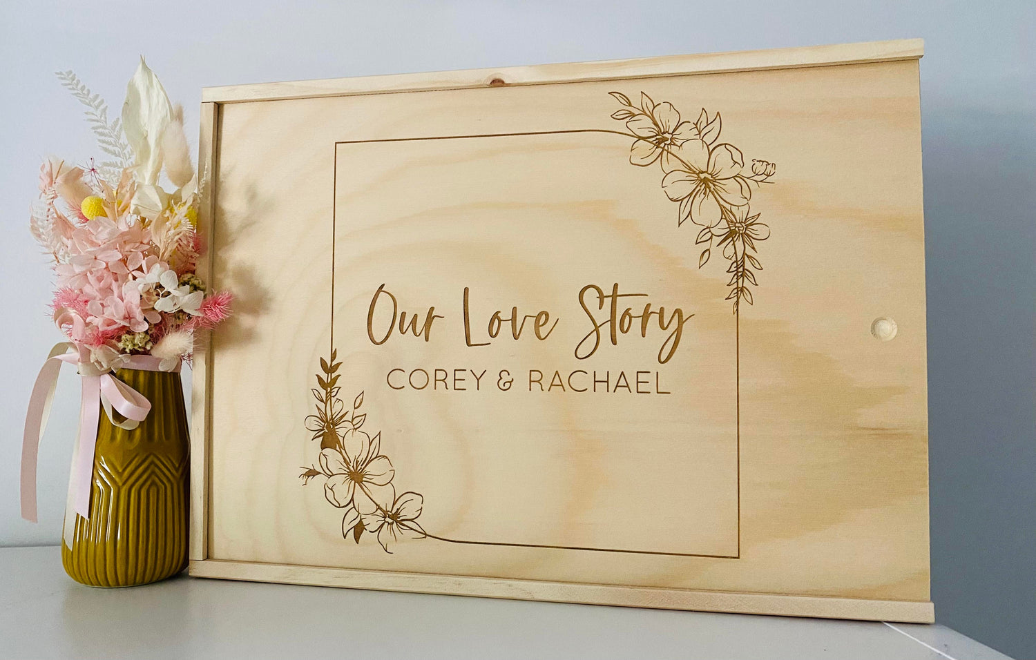 Built strong with 12mm pine sides with a 3mm ply base and a 4mm ply sliding lid which opens up to a large space for you to fill with cherished memories and keepsakes.