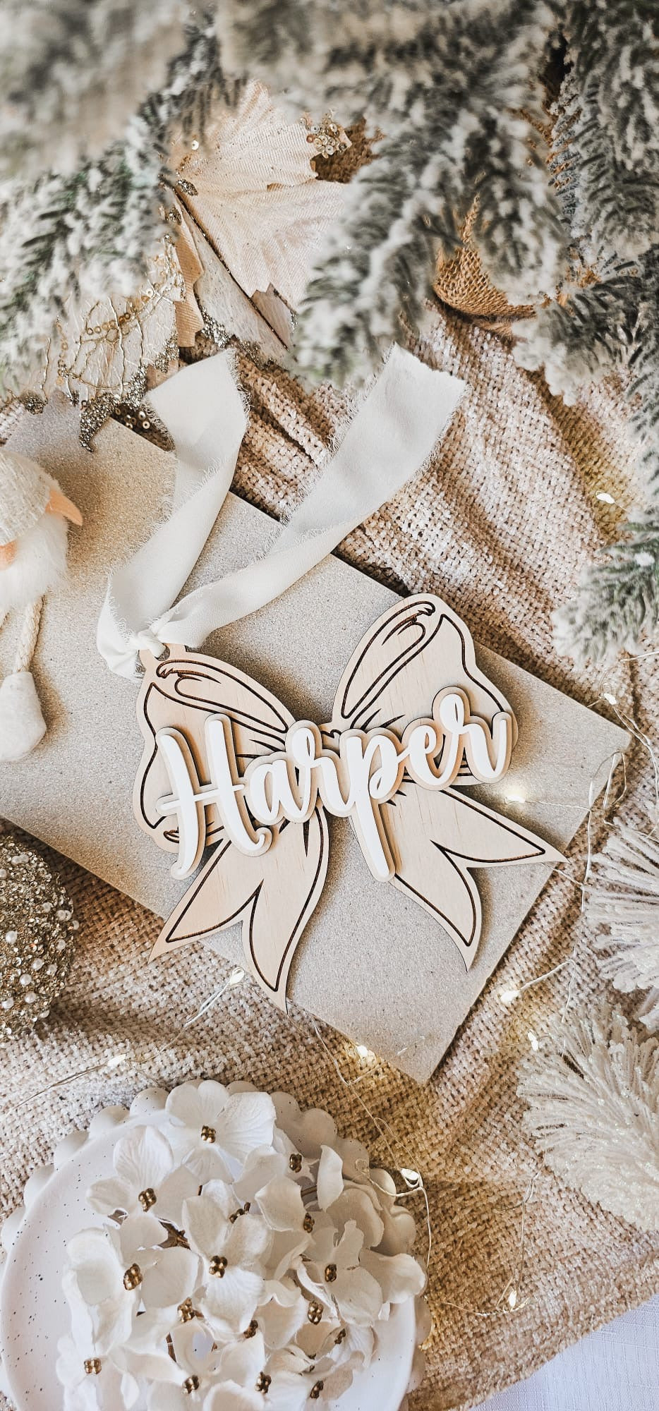 Make your gifts stand out with our Personalised Timber Bow Christmas Tag! These unique bow-shaped tags are bow-tiful and can be personalised with a name. Spread some holiday cheer with a touch of cuteness