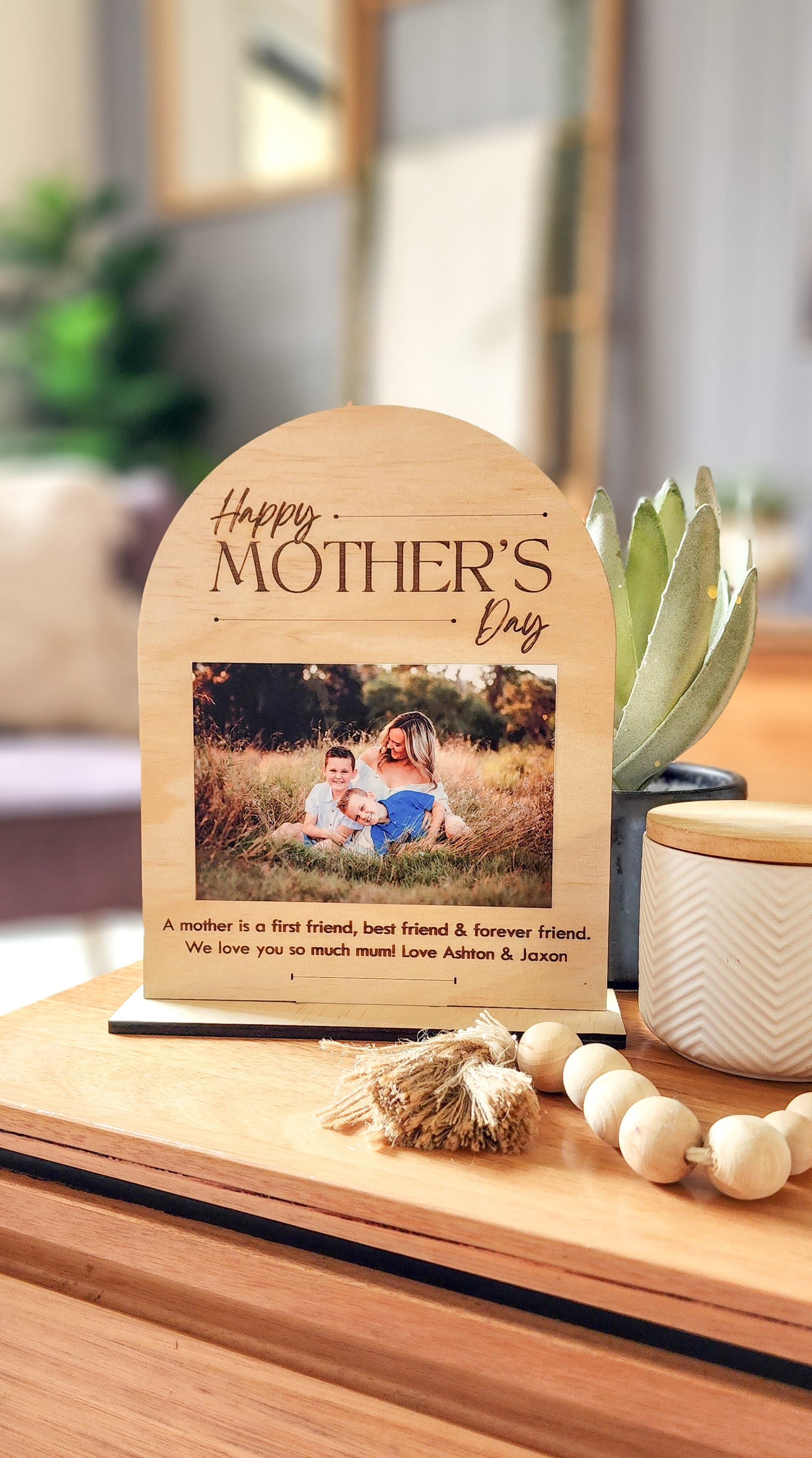 Featuring an arch with your choice of either 'Happy Mothers Day' or leaf design as the header, space for a horizontal 6x4 inch picture and sweet quote underneath. Please note this design has only been designed to suit a horizontal photo.