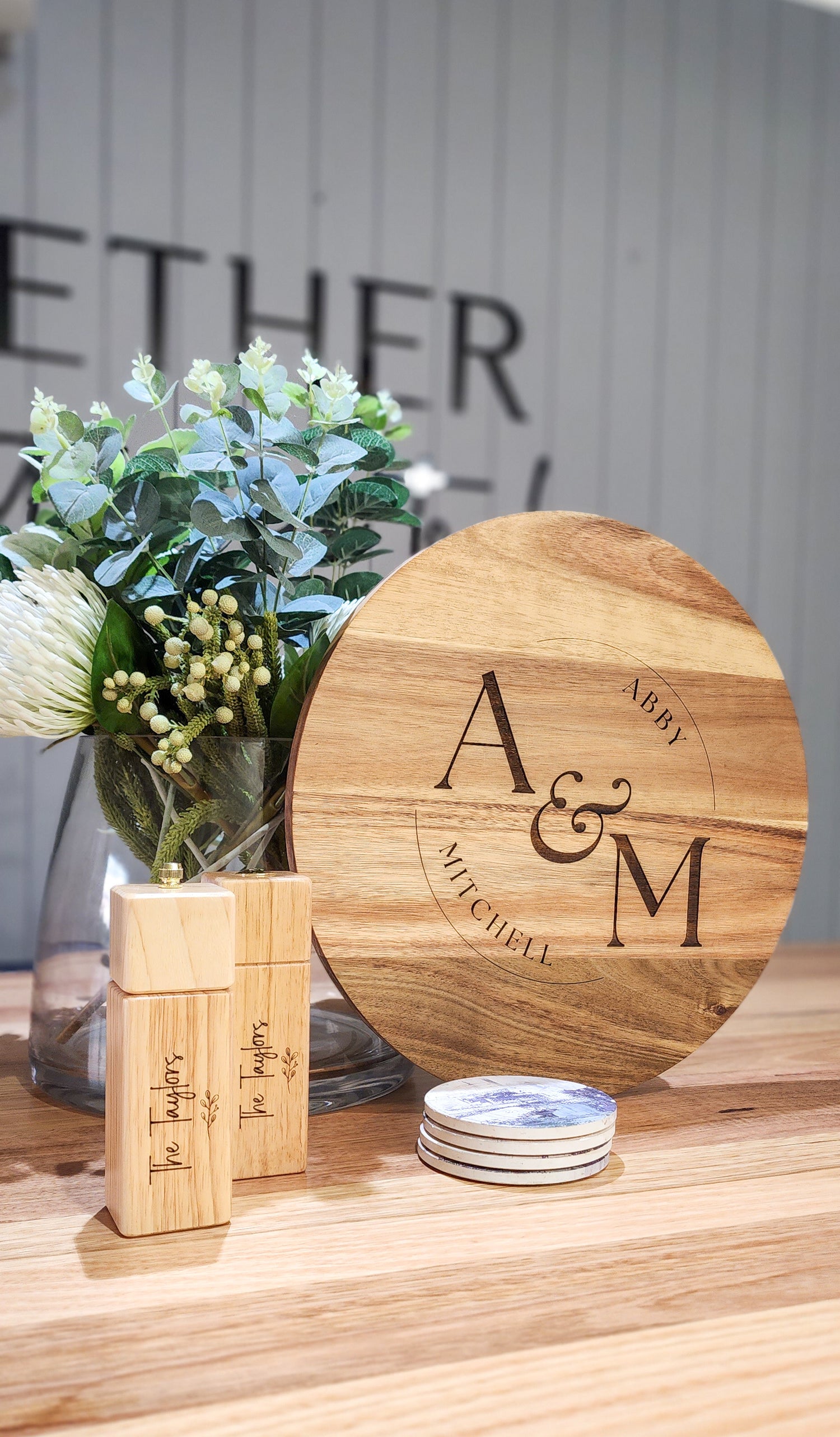 Spice up your life (and your meals) with this personalised Salt & Pepper Set. Made from high-quality timber, this unique set adds a special touch to your kitchen. With your surname added, it's sure to bring a smile to your face (and your guests)!