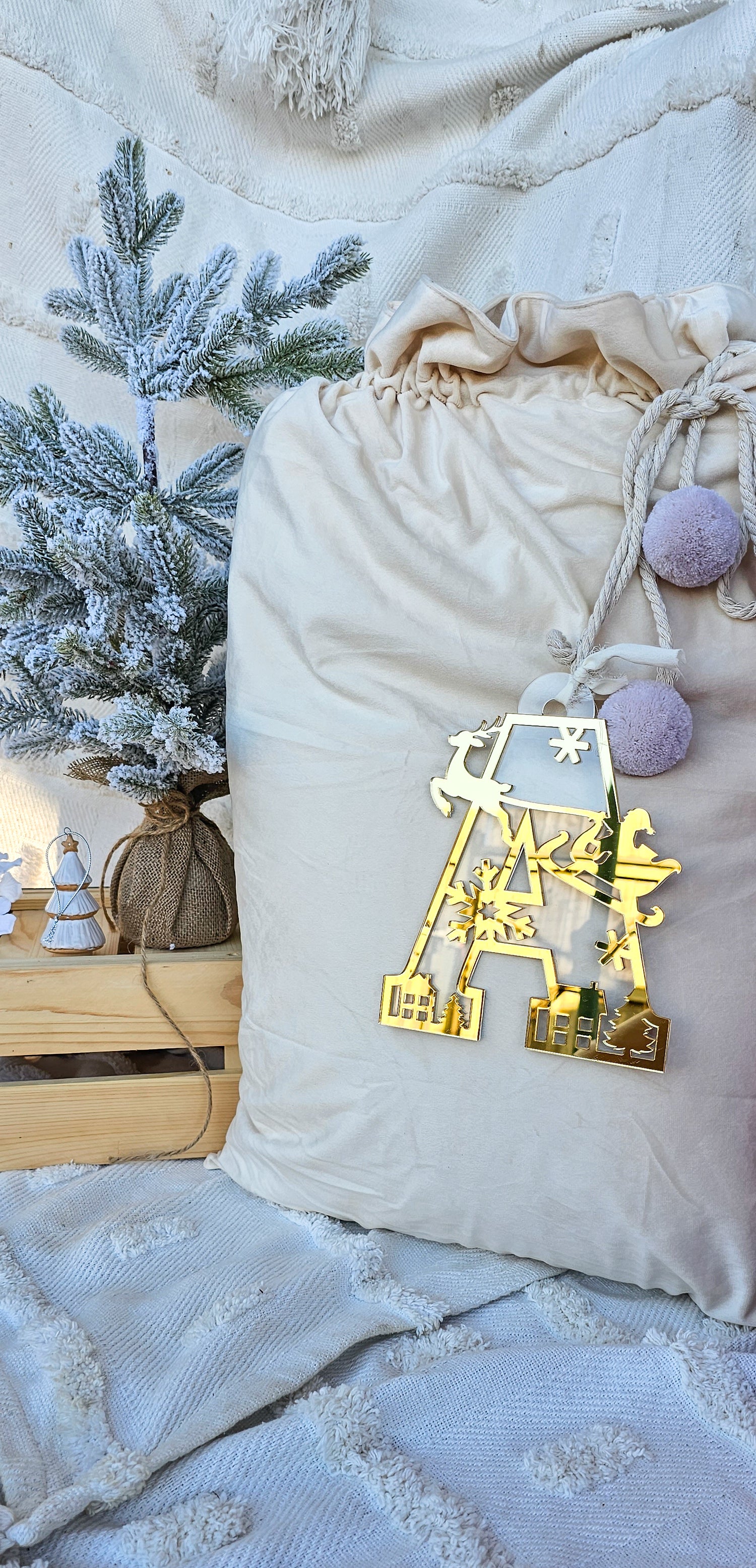 Featuring a fun & festive santa sleigh letter design over 2 layers of acrylic, clear and your choice of mirror acrylic. This adds a level of luxe and shine to the big day.