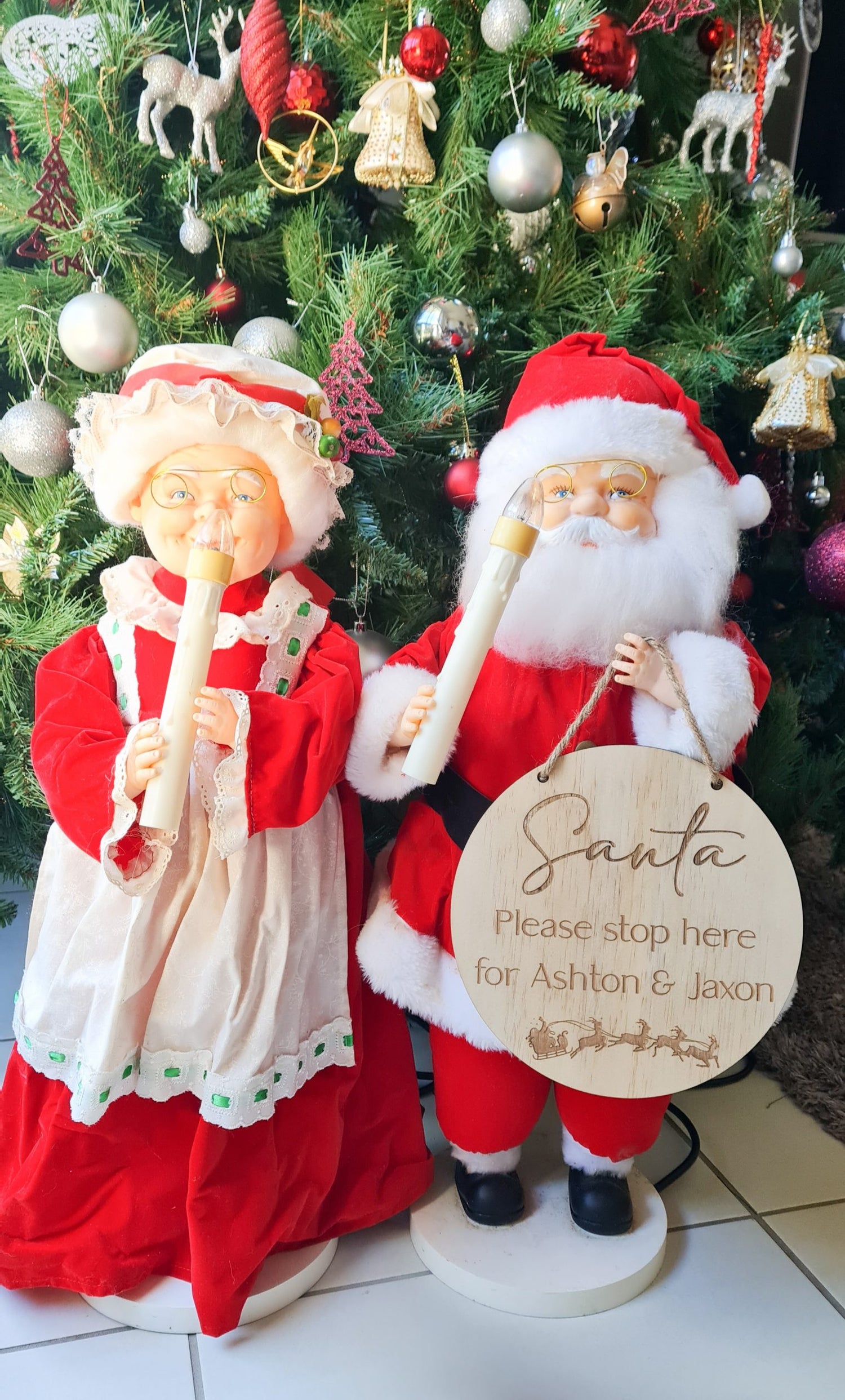 Our super cute personalised round Santa stop here plaque comes in either 20 or 30cm and in the option to have Santa engraved or in 3D acrylic. This plaque comes ready to hang.