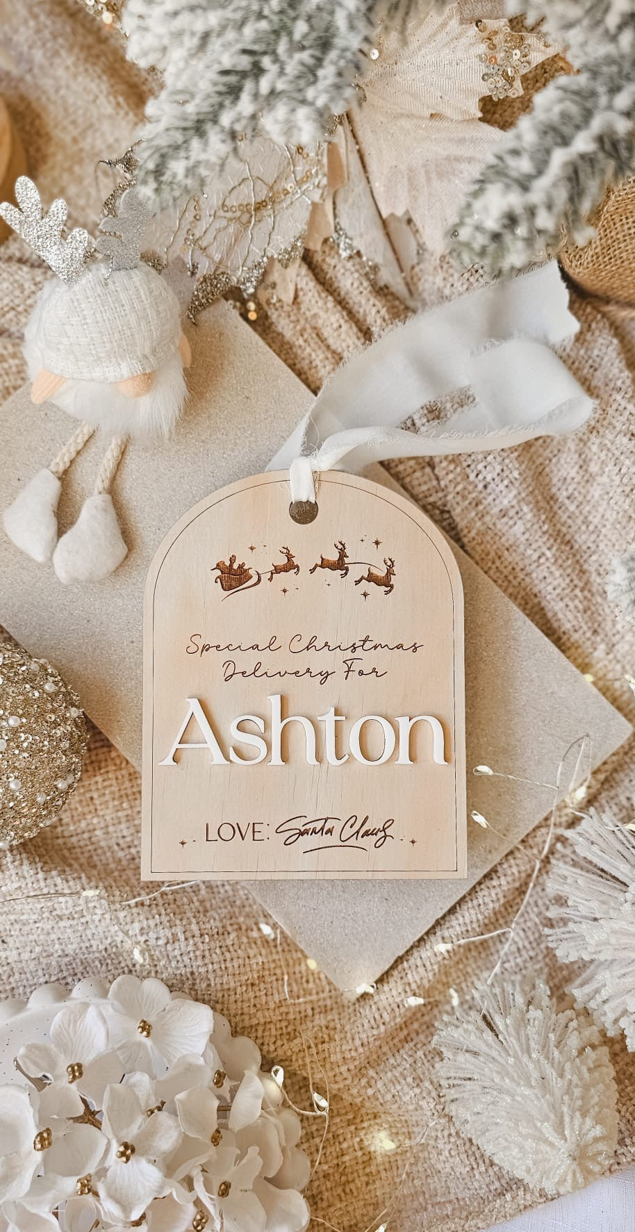 Complete your child's Santa sack with our amazing 'Special Christmas Delivery' arch tag.