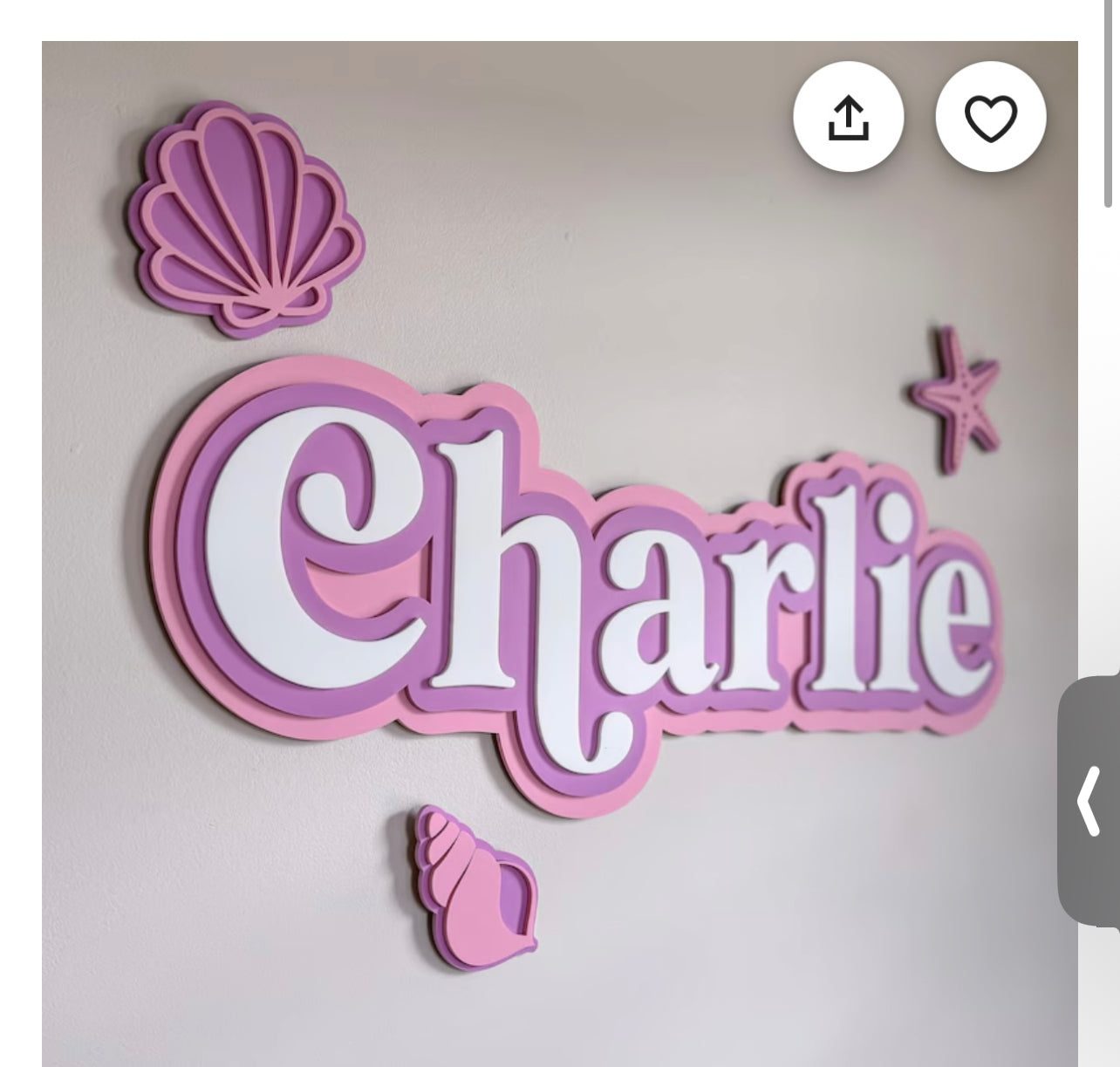 Triple Layered name plaque with additional flowers -90cm - Name: Charlii - $250