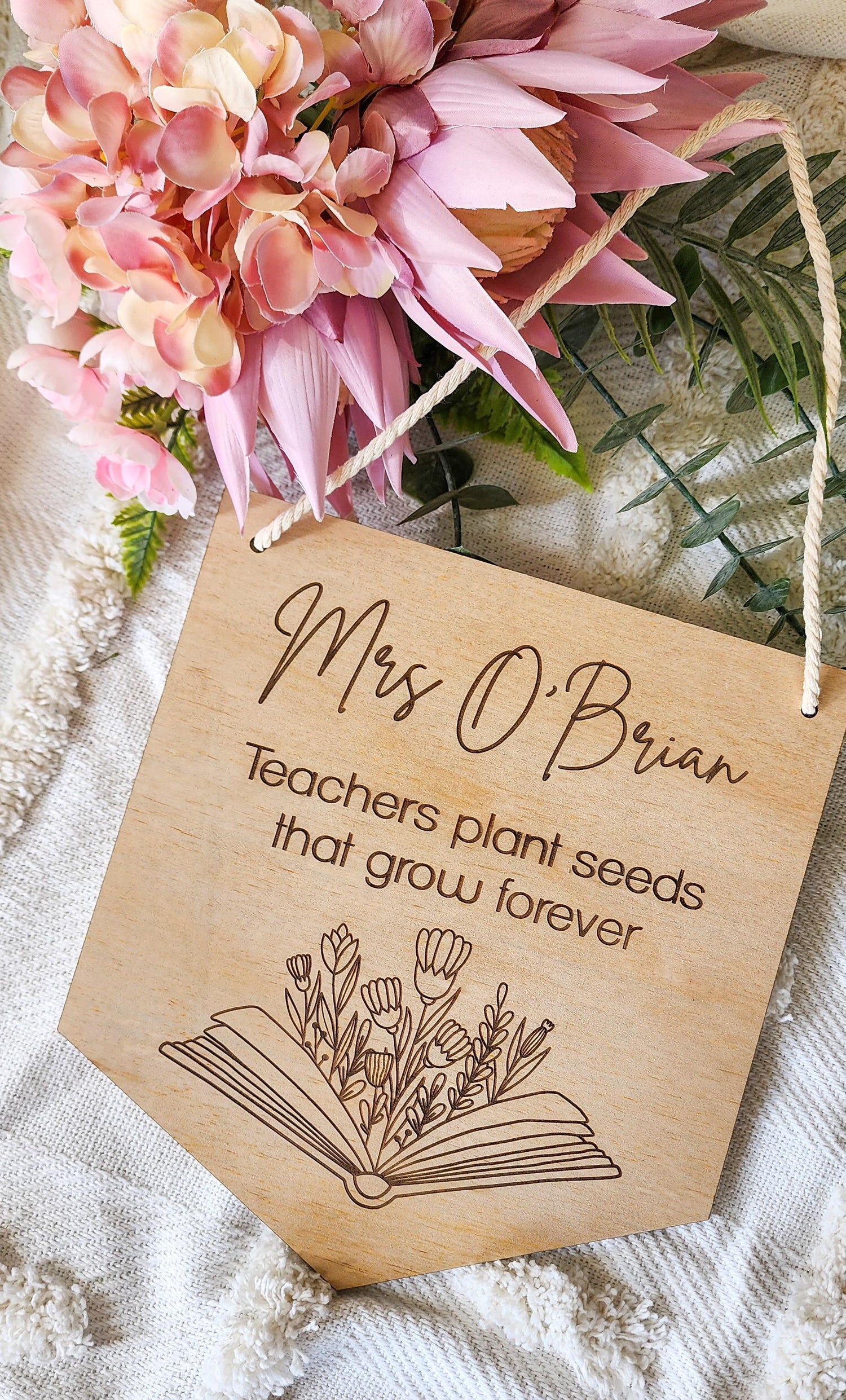 This beautiful flag, personalised with your teacher's name is the perfect gift for your favourite teacher or teachers aid.
