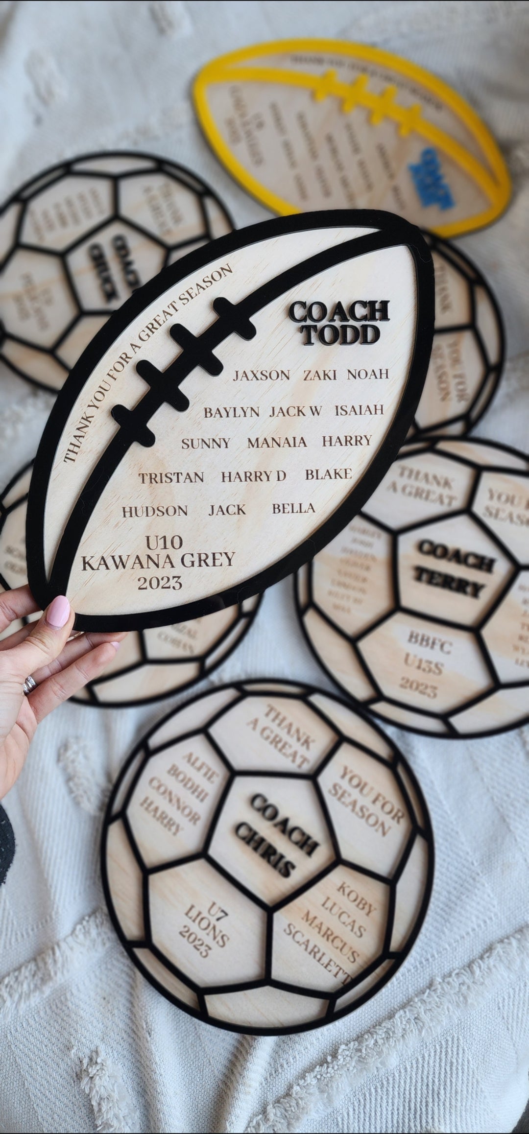 Made from all acrylic; base, top and coach name.