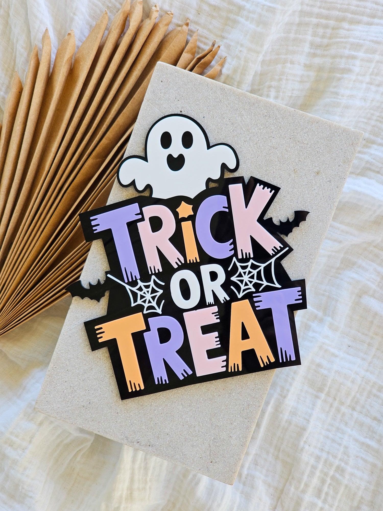 Welcome guests with a playful twist using this Trick or Treat Halloween Sign. Perfect for your front door or as festive decor, it invites visitors to join the spooky fun and sets the tone for a cheerful Halloween celebration.