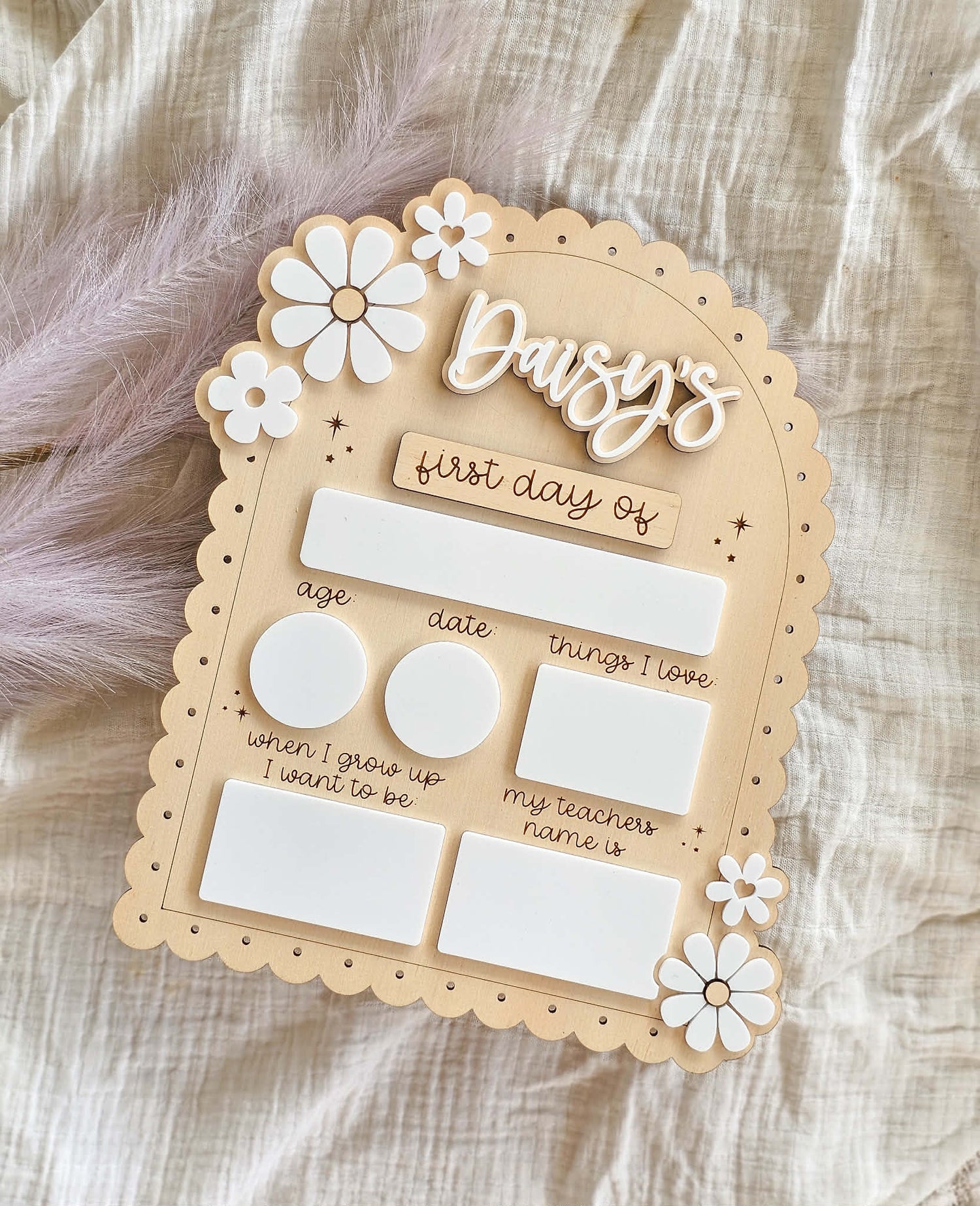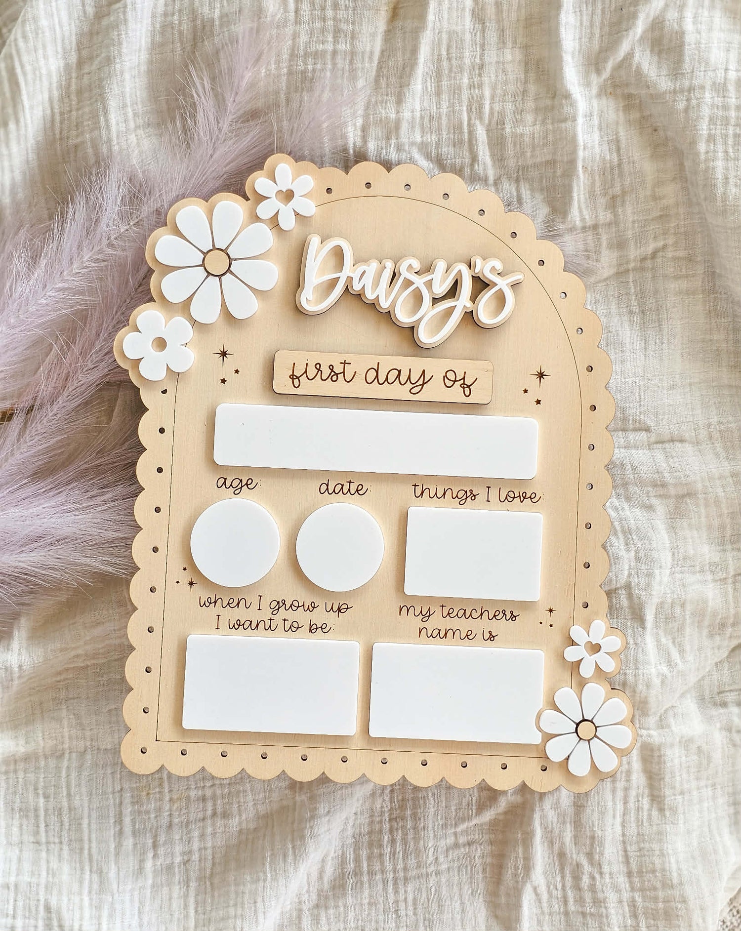 Capture and compare your child's first and last day of school milestones with our keepsake board. Build your own board by personalising with your children's name and their favourite colours, creating a cherished keepsake for years to come. You will be able to look back and watch their growth and how their personality evolves throughout their school life!