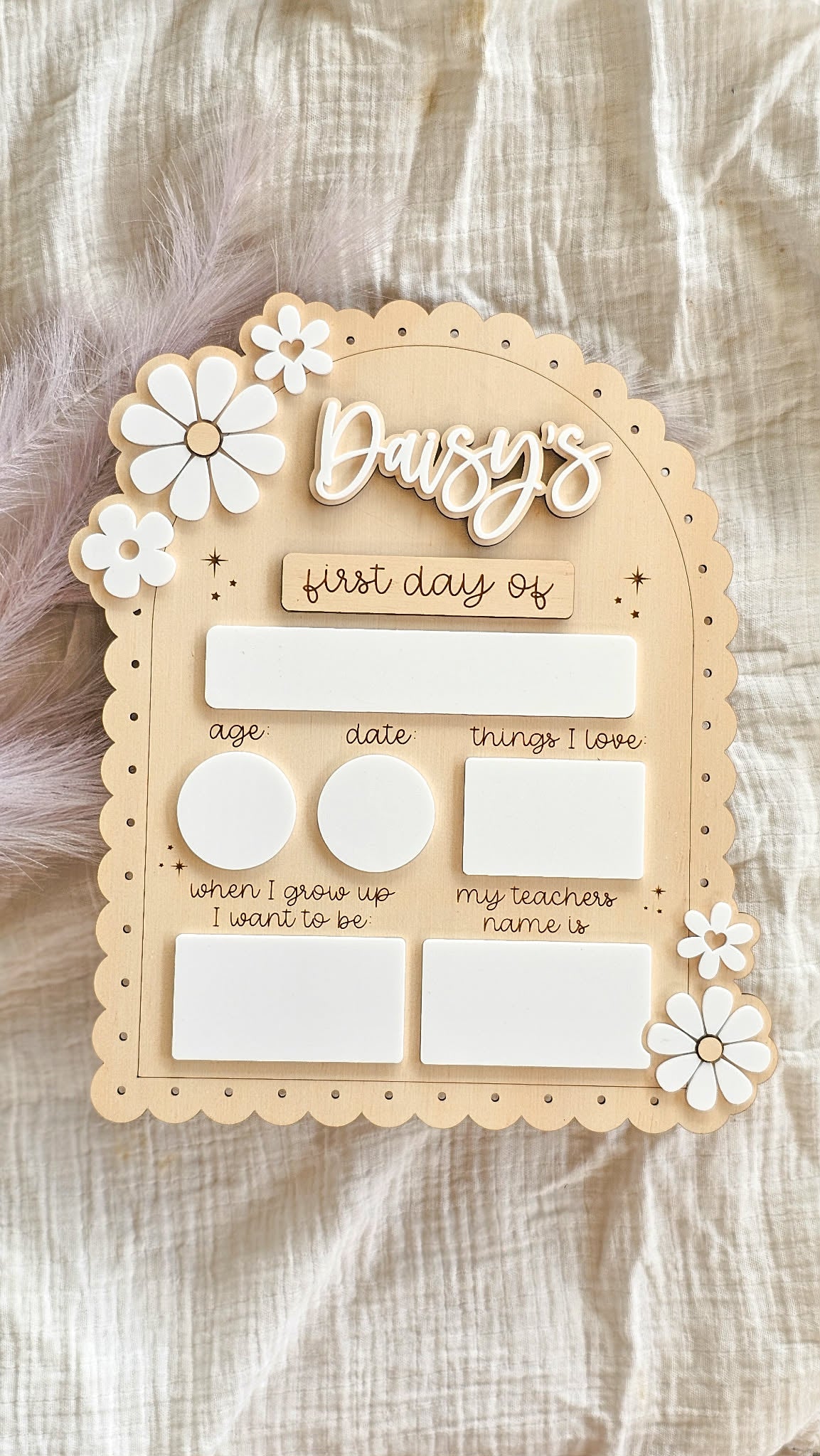 Vintage Scallop with 5 Daisies First / Last Day Back to School Board