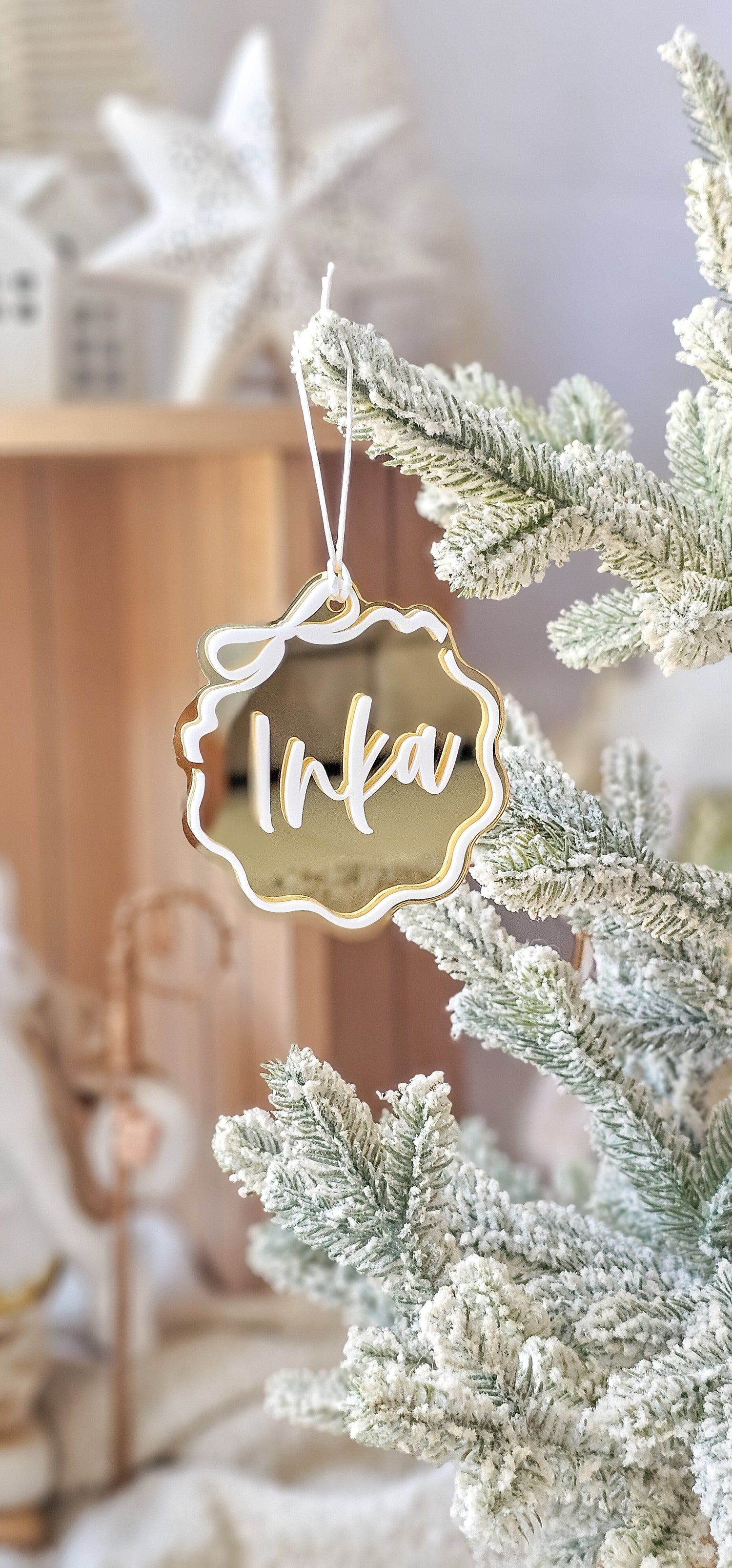 Add a whimsical touch to your festive decor with our Wavy Bow Christmas Ornament. Its playful wavy shape and charming bow design bring a fun twist to traditional holiday decorations. Perfect for personalising, this ornament adds joy to your tree, making every Christmas moment a little brighter.