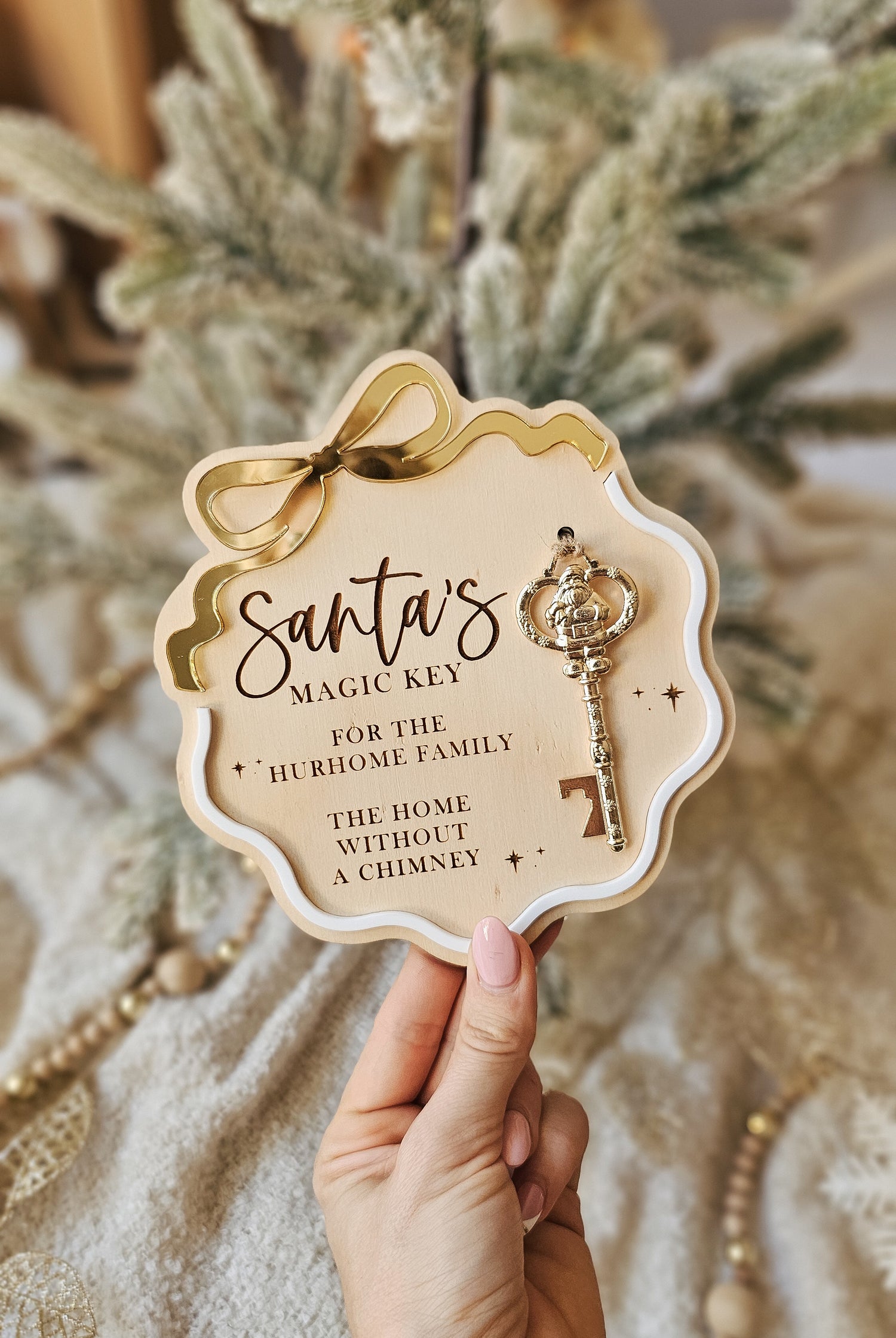 Welcome holiday cheer with this wavy bow-shaped Santa Key Plaque. Inspired by timeless Christmas magic, it’s just right for hanging your special Santa key to open the door to festive fun. Its fun and nostalgic design adds a joyful sparkle to your holiday decorations, bringing smiles and seasonal spirit all season long.
