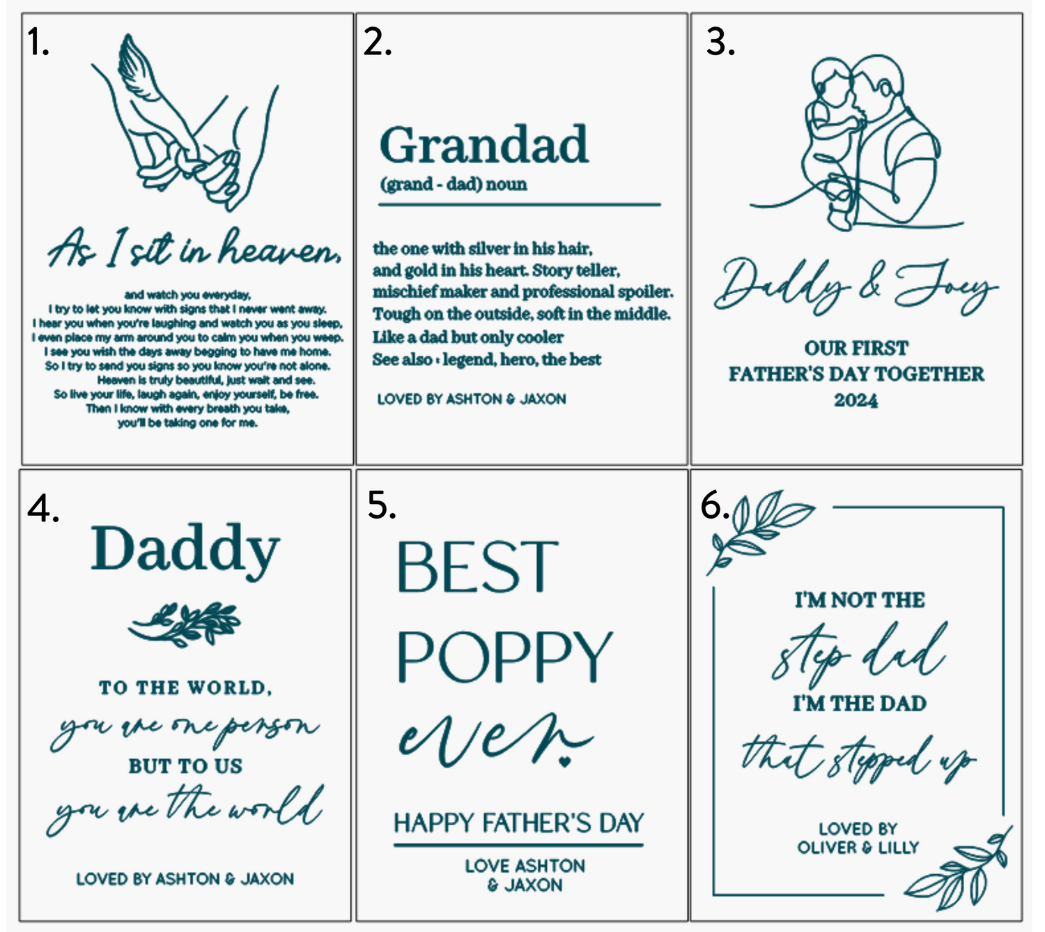 Choose from 6 designs, all can be changed to suit the names/titles in your family.